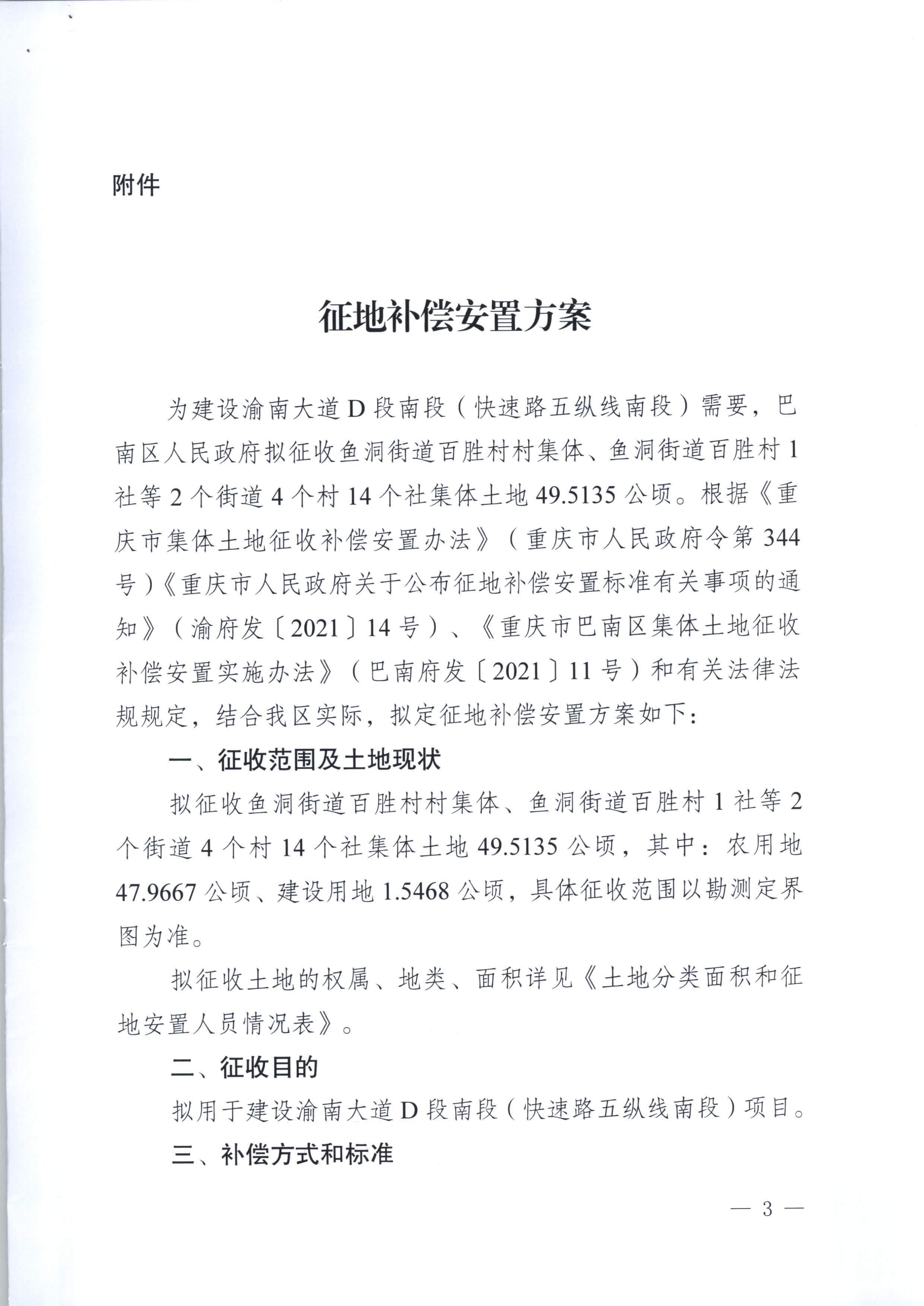 关于征地补偿安置方案的公告(巴南府方案公告〔2021〕9号)