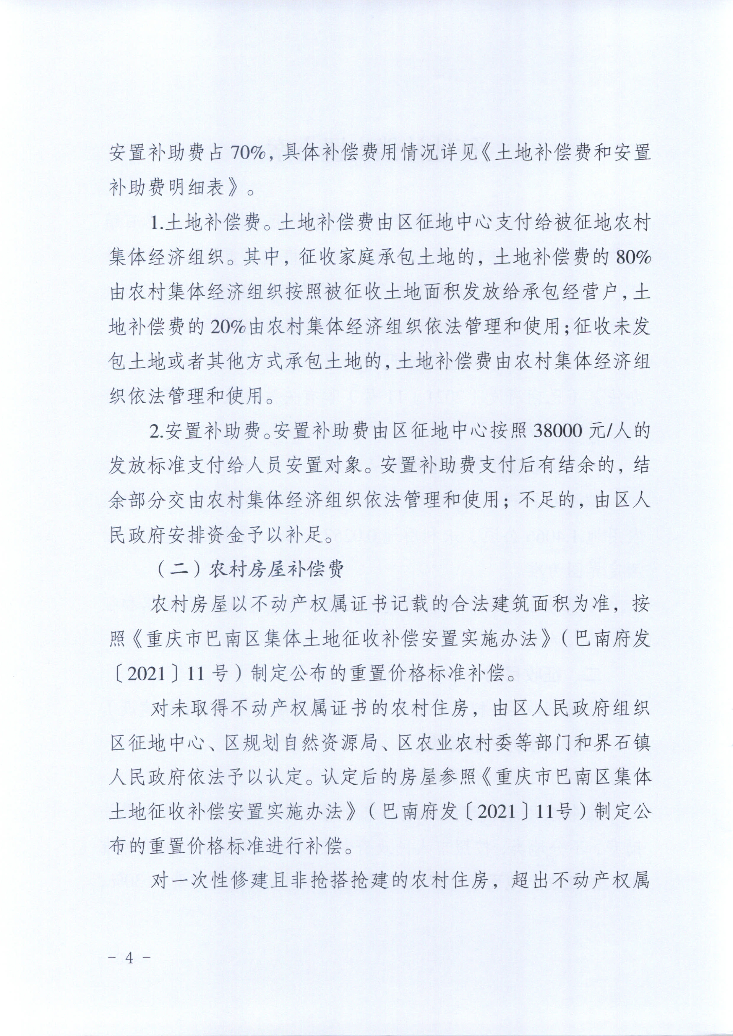 关于征地补偿安置方案的公告(巴南府方案公告〔2022〕15号)