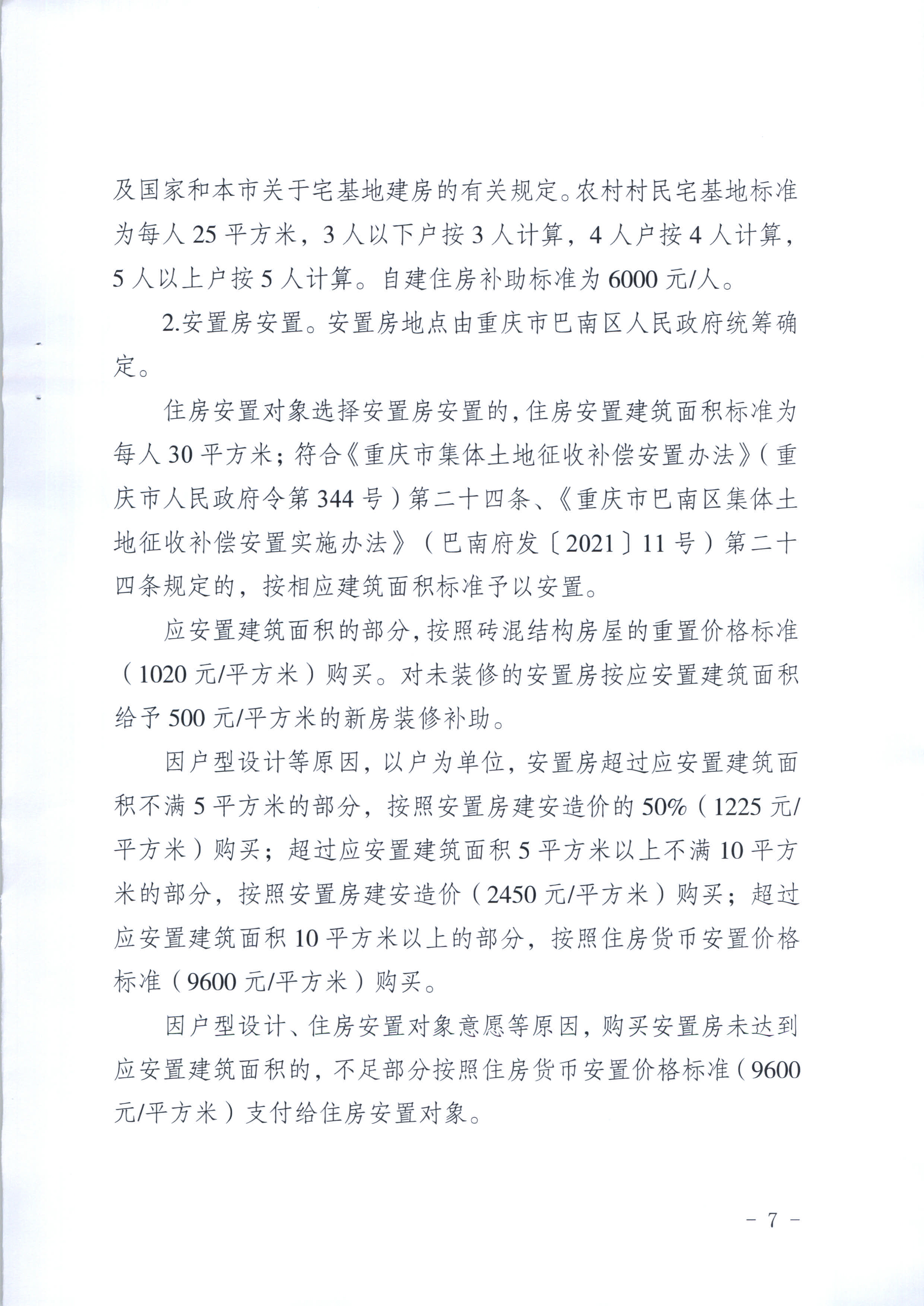 关于征地补偿安置方案的公告(巴南府方案公告〔2022〕24号)