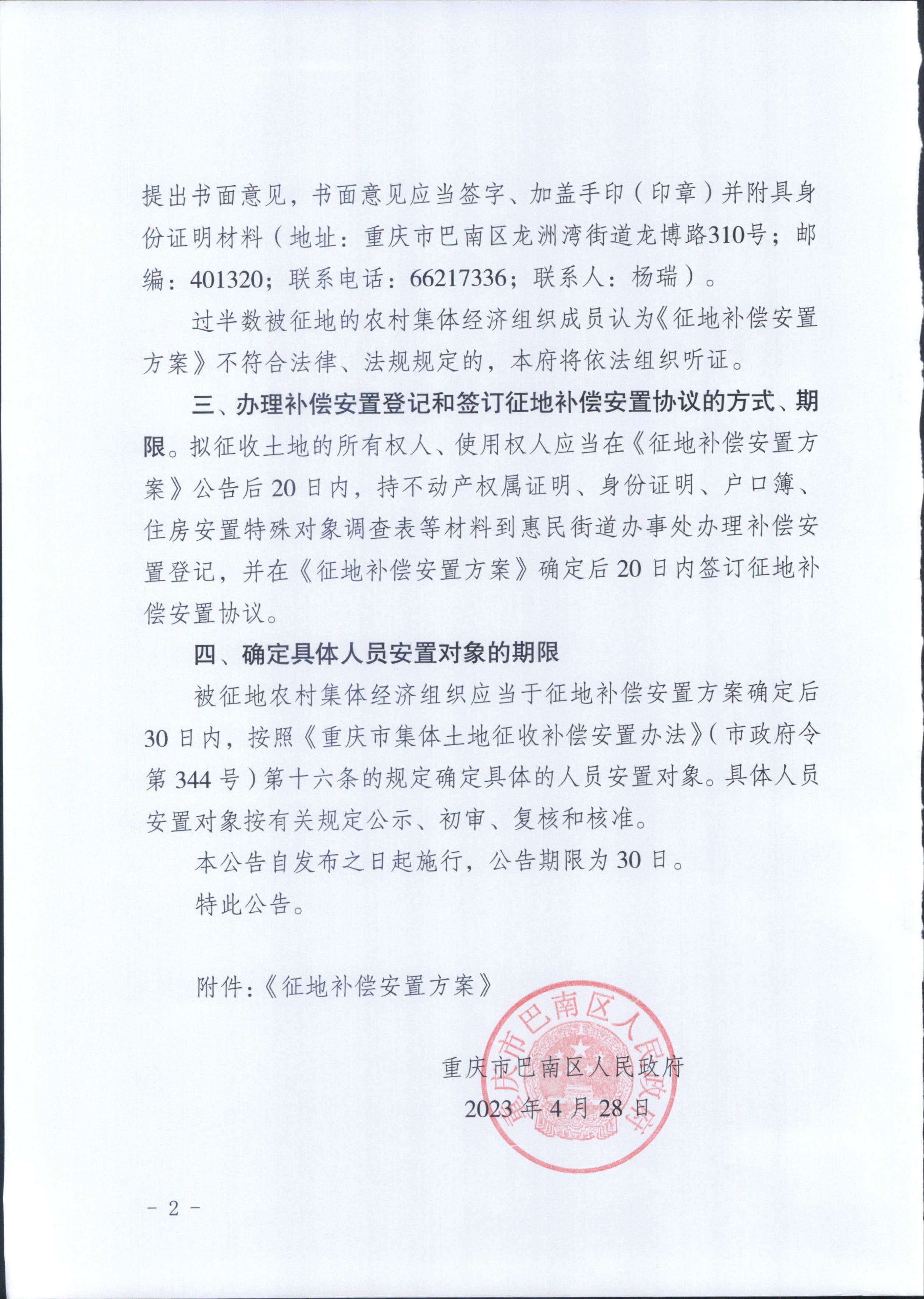 关于征地补偿安置方案的公告(巴南府方案公告〔2023〕5号)