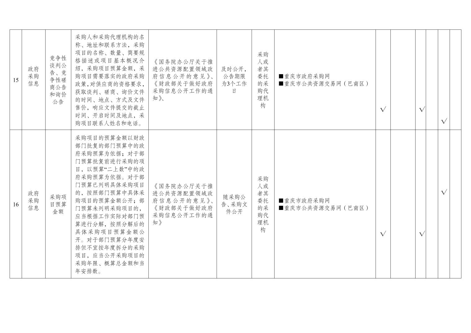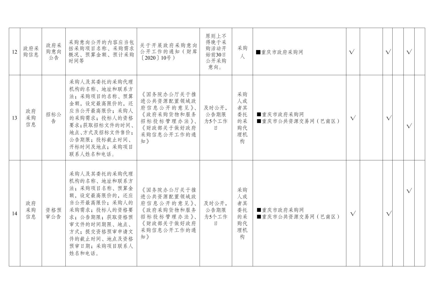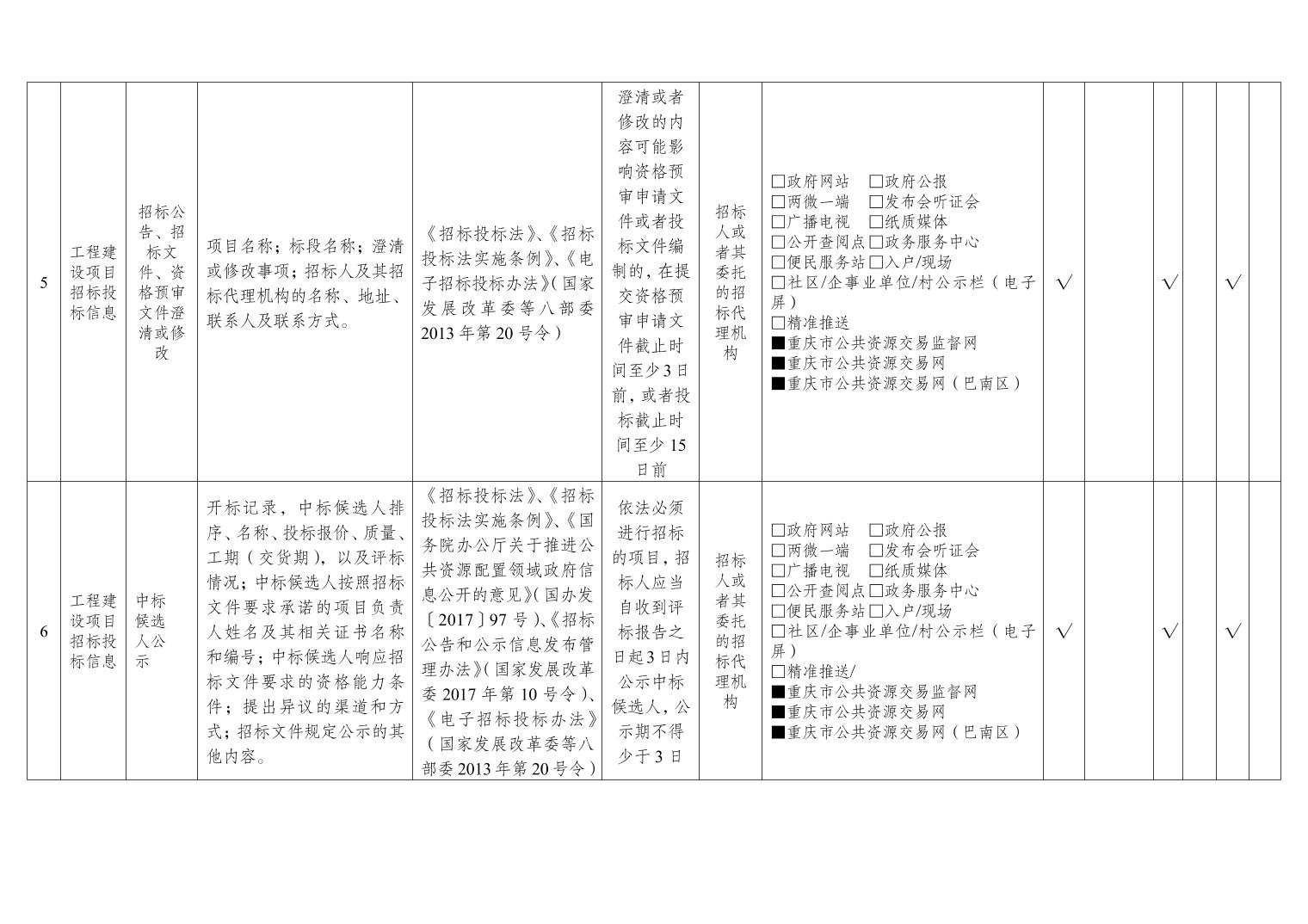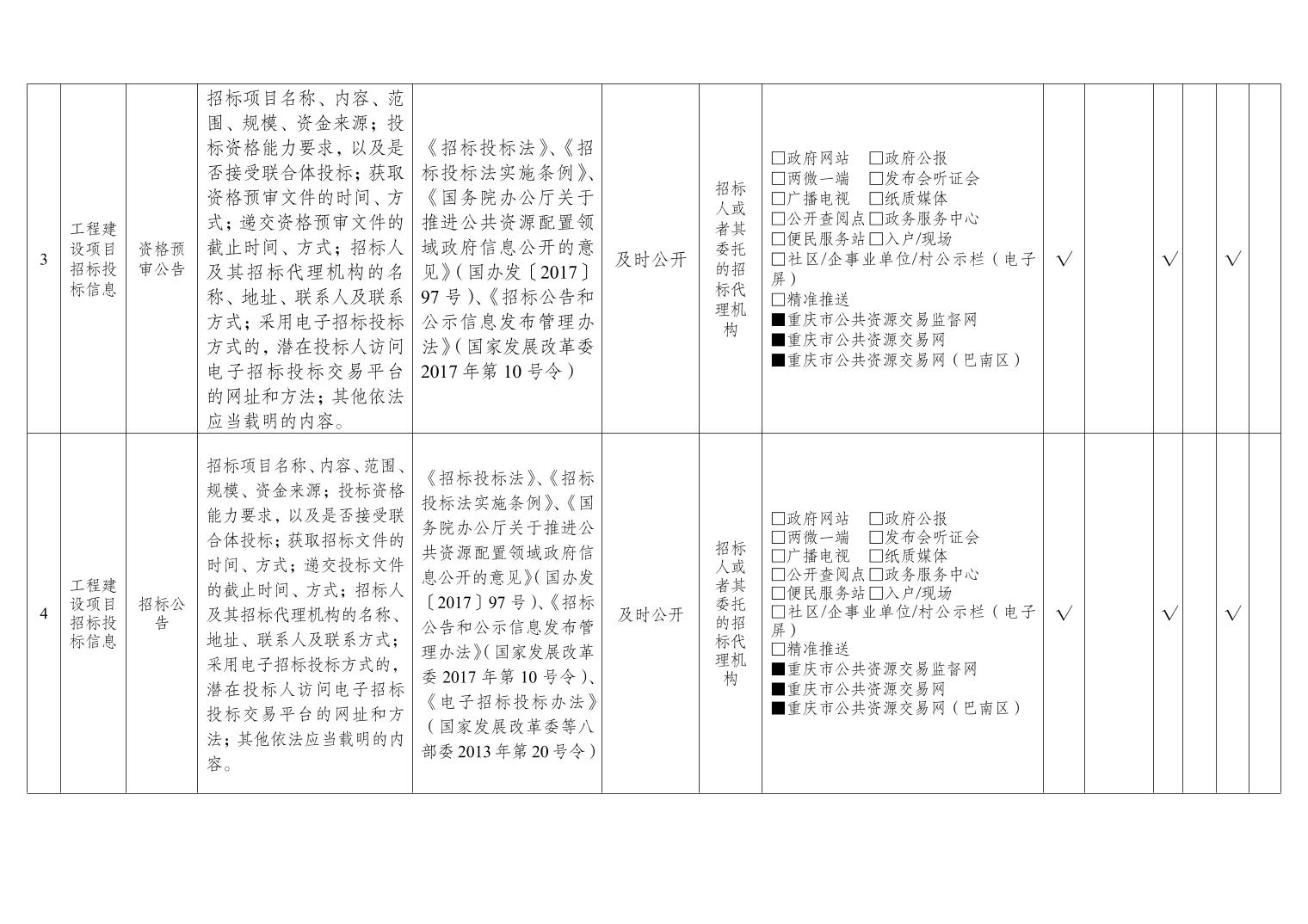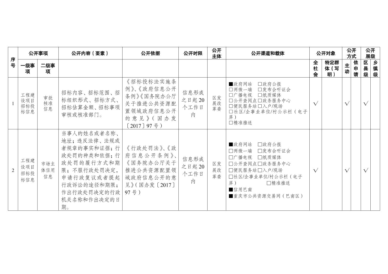 重庆市巴南区公共资源交易领域基层政务公开标准目录(2026年版)
