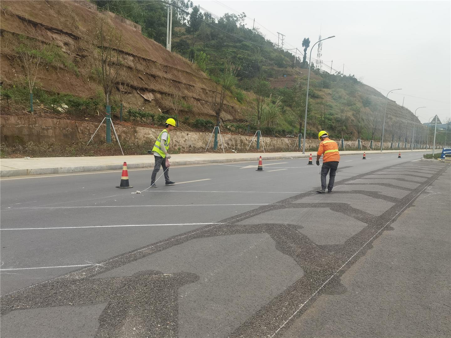 记者在二期工程施工现场看到,一条笔直的道路一路延伸向前,道路两旁的路灯、防护栏等均已全部完成安装,绿化带也已种植完毕,几名工人正在进行道路划线的扫尾工作。