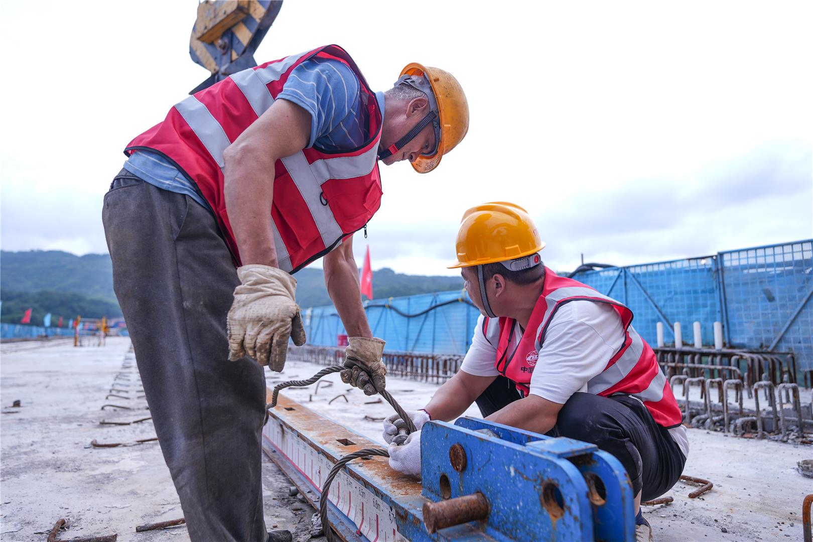 “五布河双线特大桥主跨采用(68+2×128+68m)连续刚构,总跨度达392米,呈‘两端短中间长’的对称结构,最高墩达105米,相当于35层楼高。且桥址区域环境敏感性高,具有安全风险高、技术难度大、工期压力紧等多重挑战。”据中铁十二局渝万高铁项目总工程师张晓飞介绍。