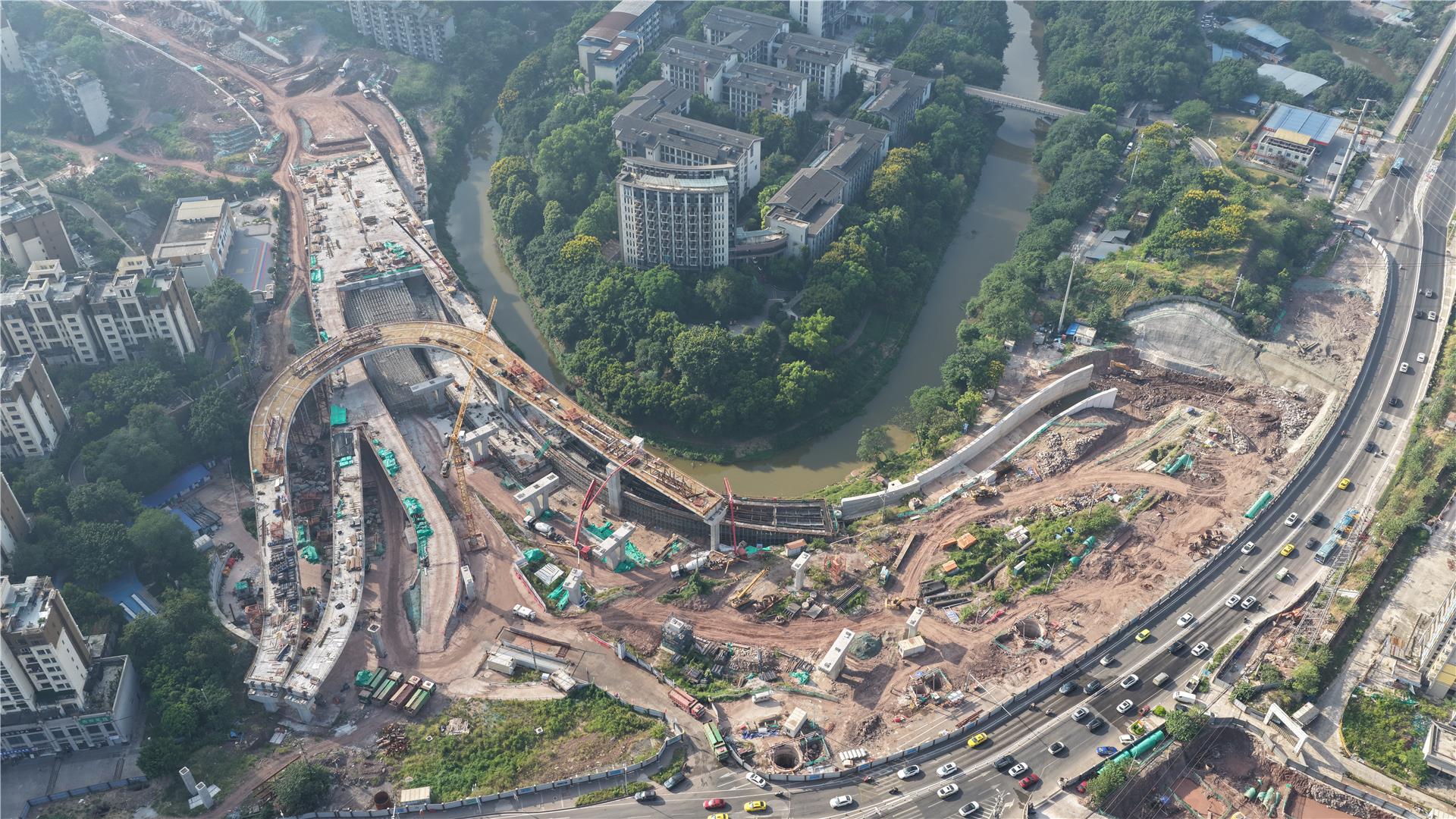 记者在施工现场看到,工人们正在进行桥梁上部结构的现浇箱梁施工、钢箱梁安装等工作。