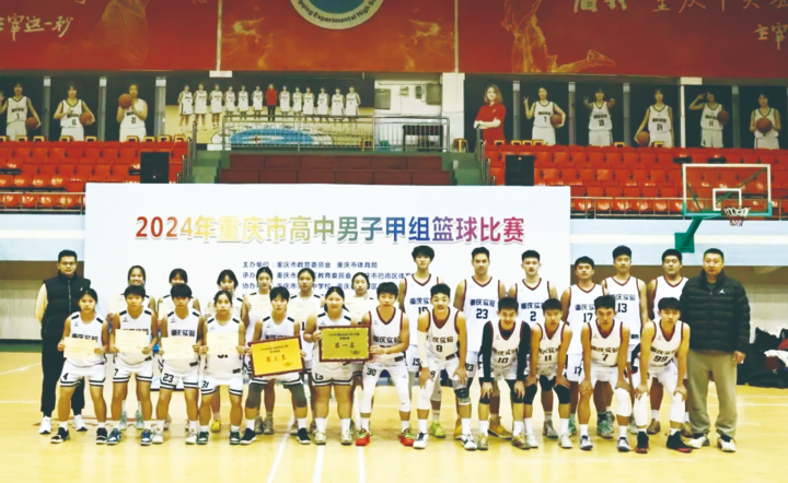 重庆市实验中学篮球队赛场合影本组图片由区教委提供