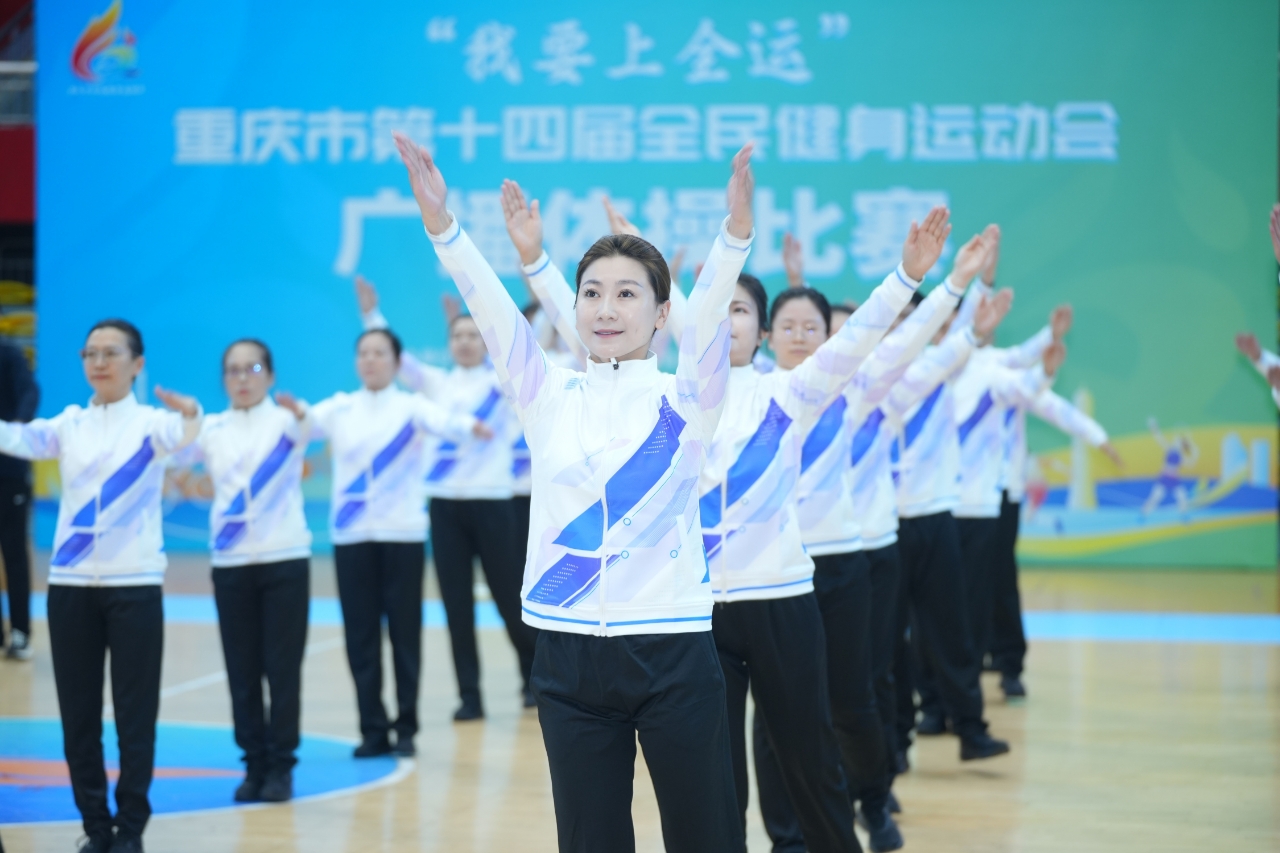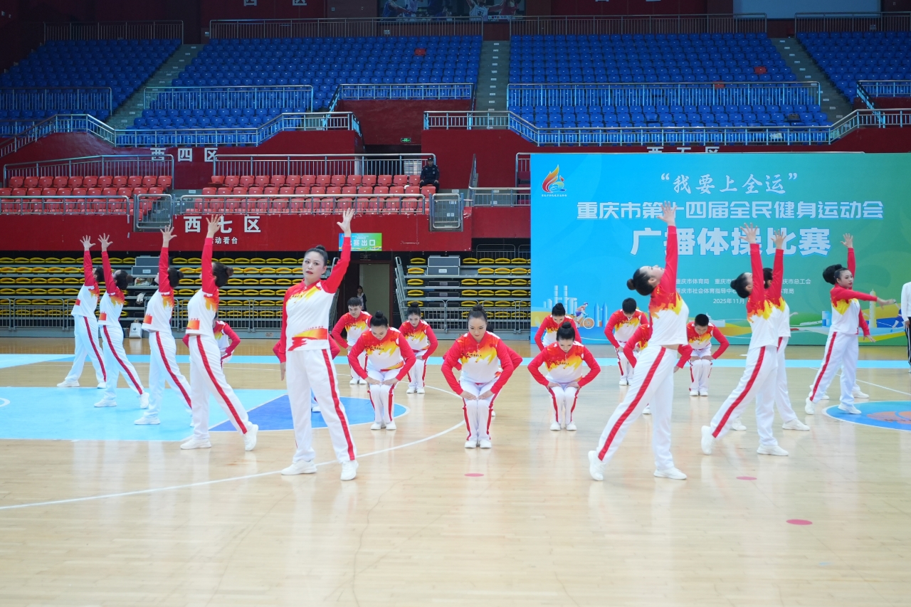 初冬的重庆,全民健身热情如火。11月13日,由重庆市体育局、重庆市直机关工委、重庆市总工会主办,重庆市社体中心、重庆市巴南区体育局承办的重庆市第十四届全民健身运动会广播体操比赛在华熙LIVE·鱼洞·篮球馆内拉开帷幕。
