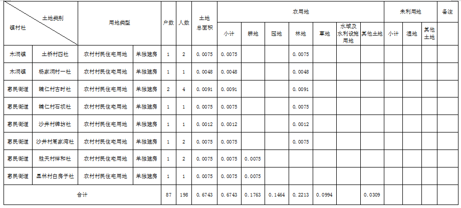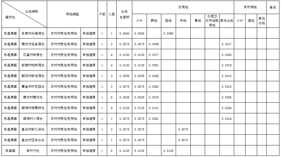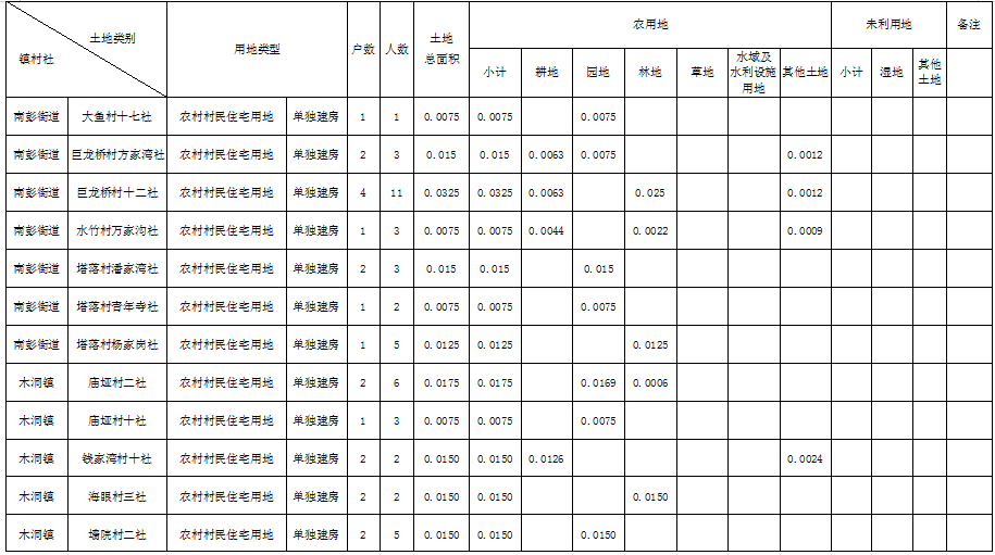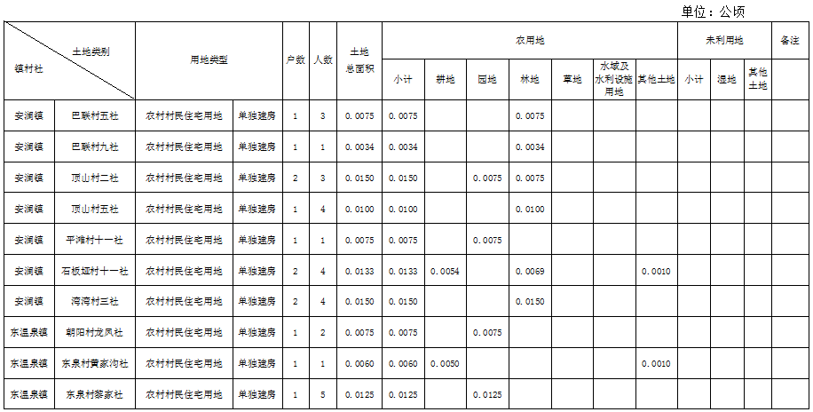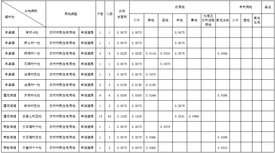农村村民住宅用地土地分类面积表