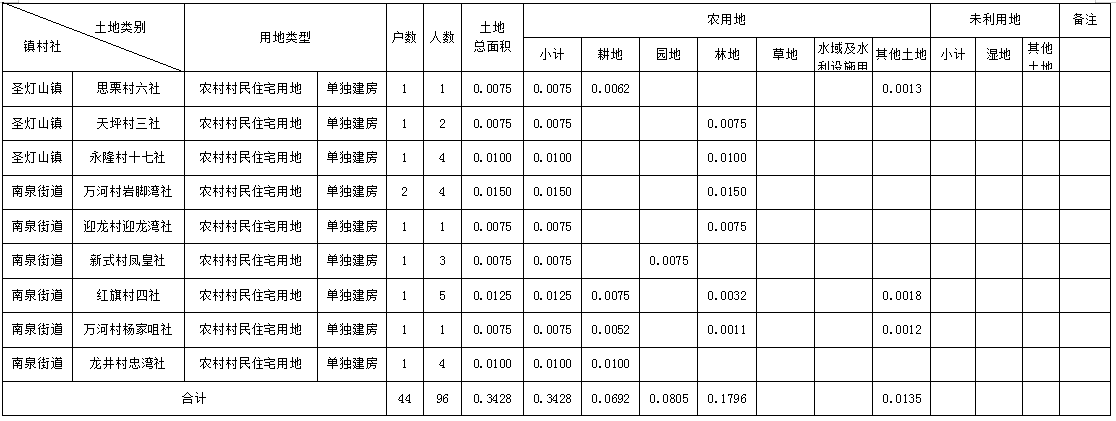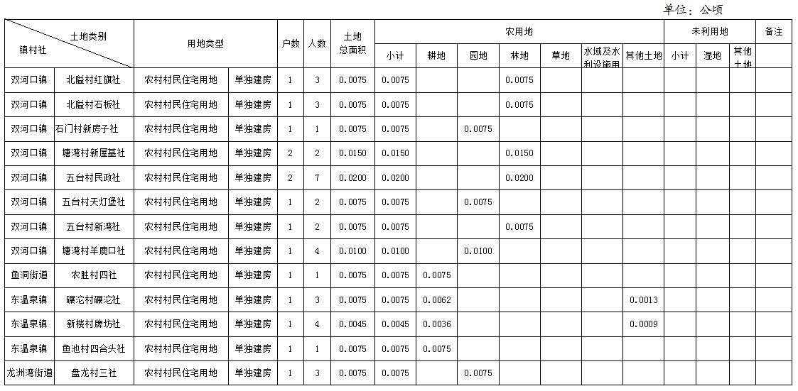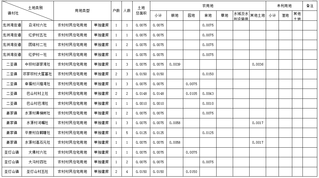 农村村民住宅用地土地分类面积表