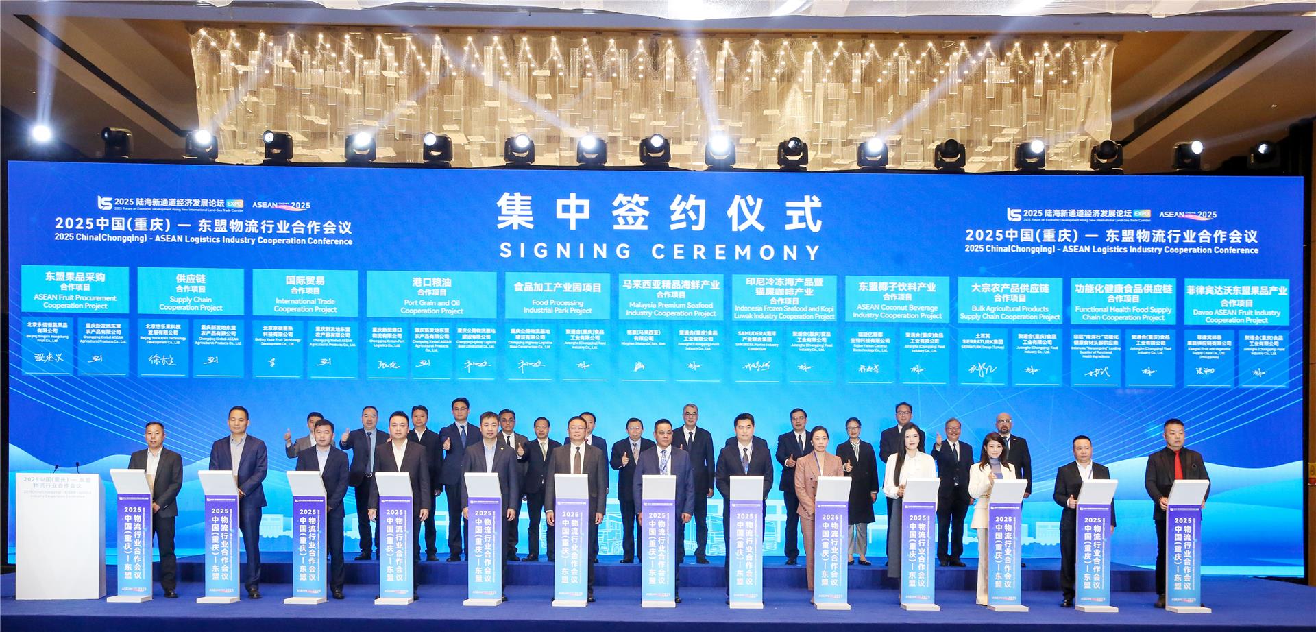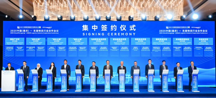 据介绍,2023年,中国(重庆)-东盟物流行业对接基地揭牌;2024年,中国—东盟跨境公路班车物流联盟成立。2025年,中国(重庆)—东盟物流行业合作大会深化西部陆海新通道建设,聚焦食品与农产品领域经贸合作,推动食品及农产品产业落地转化,精准对接国内外企业,达成合作协议共21个。合作项目覆盖东盟农产品种植、跨境运输、港口集散、加工分装、市场营销等全供应链环节,并促成国际产学研、“渝车出海”和以重庆为枢纽,横跨南美与欧亚的大宗贸易供应链合作,进一步发挥重庆在国内国际双循环关键节点作用,提升重庆在全球贸易格局中的影响力。