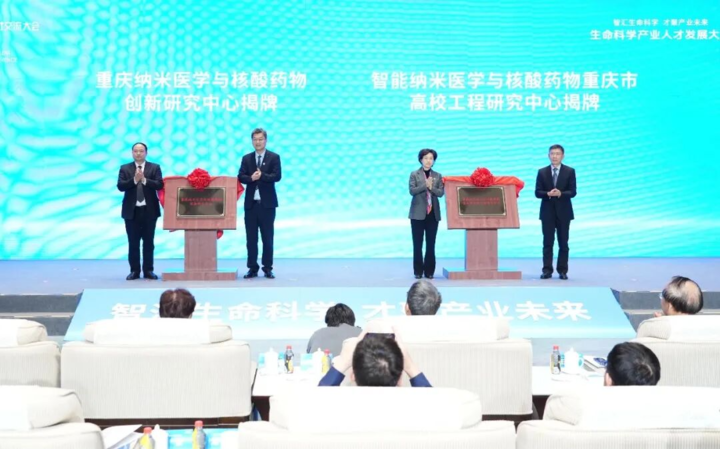 大会举行了沈阳药科大学—重庆国际免疫研究院联合实验室、沈阳药科大学重庆技术转移中心、重庆纳米医学与核酸药物创新研究中心、智能纳米医学与核酸药物重庆市高校工程研究中心落地重庆国际生物城揭牌活动。