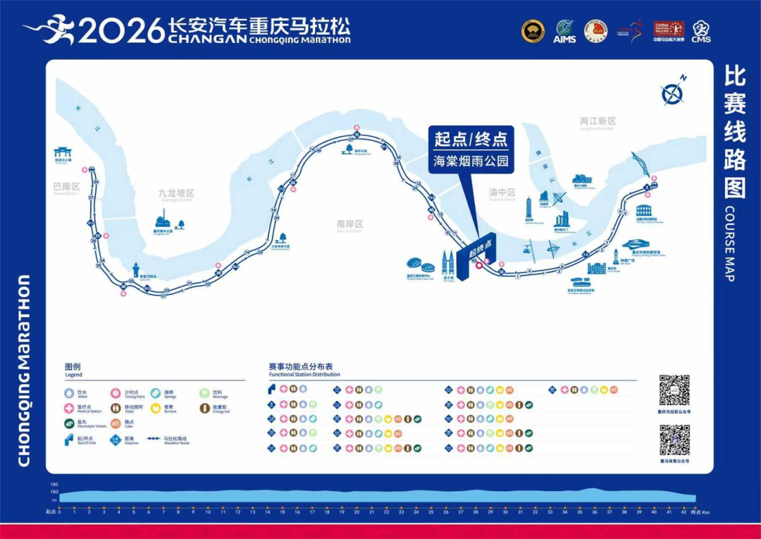 除此之外,为方便选手和市民出行,本次比赛联合高德地图,通过数字化技术,打造一键导航智能系统,为选手和市民提供便捷的出行服务。同时,赛事期间还举办了2026长安汽车重庆马拉松线上赛,让更多马拉松爱好者云跑重马。
