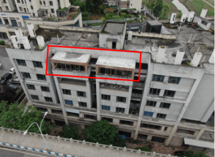 (以下红框内为位于巴南区云滨路1297号鸥鹏大道壹号小区A7幢6楼露台处修建的现浇结构。)