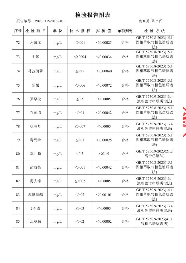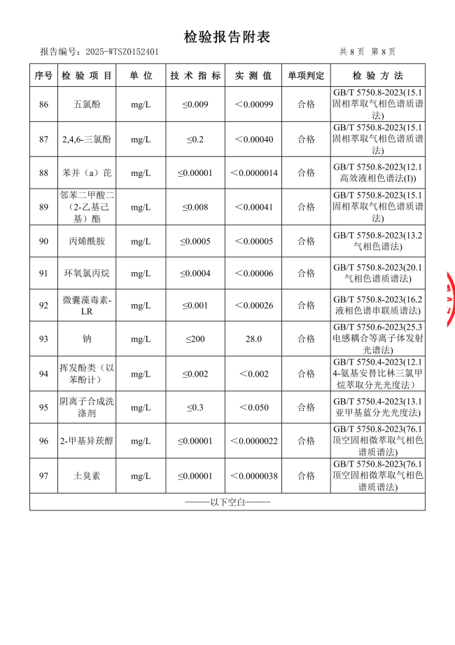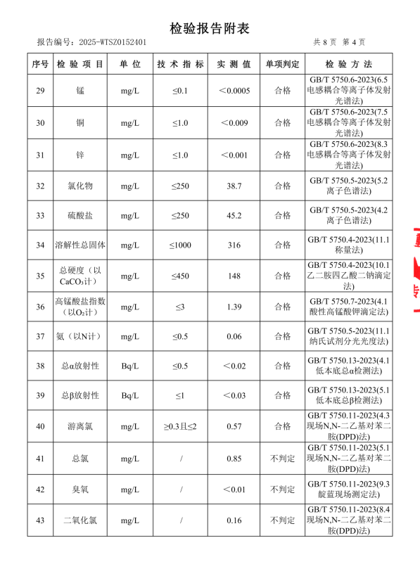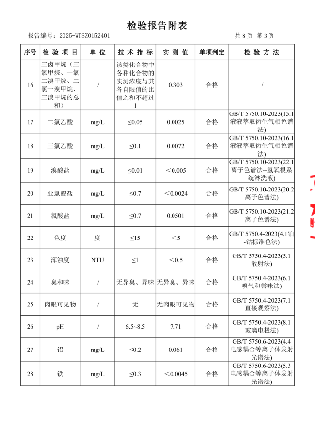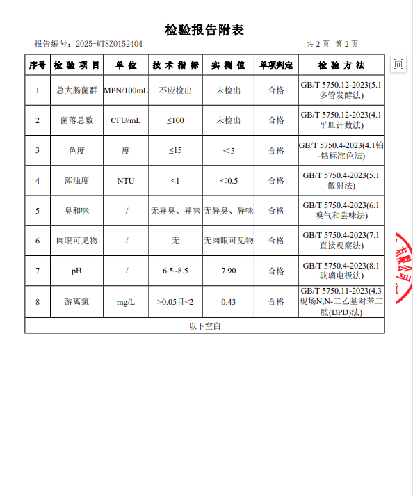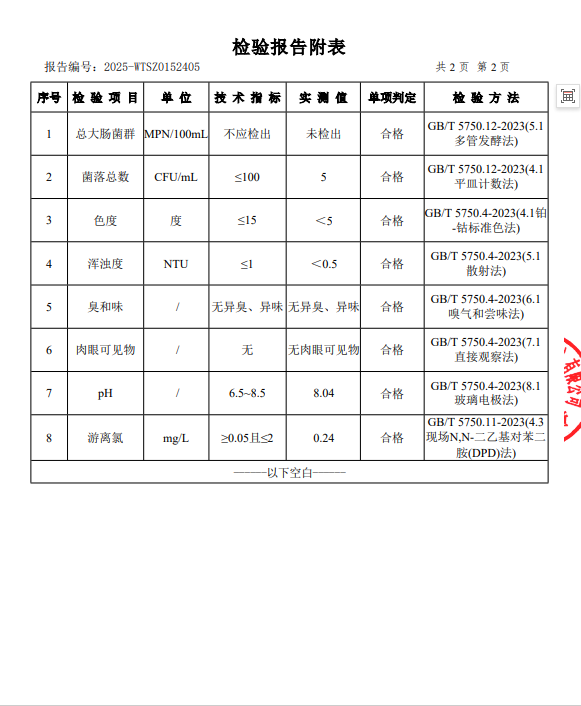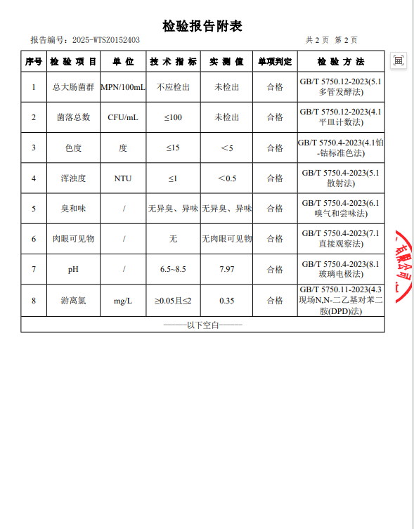现将2025年11月新大江水厂出厂水、管网水、二次供水常规指标结果公布如下: