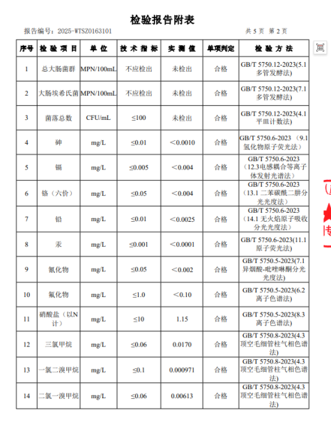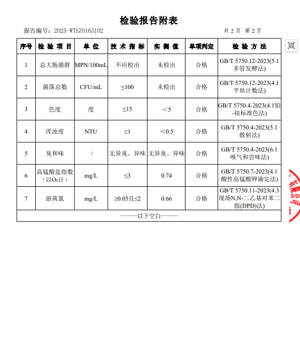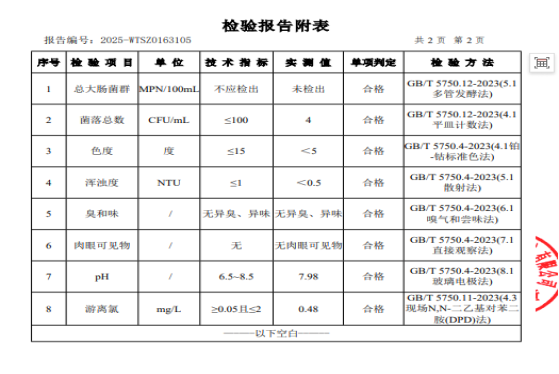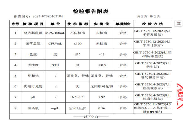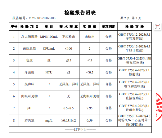 现将2025年12月新大江水厂出厂水、管网水、二次供水常规指标结果公布如下: