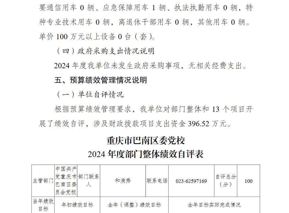 中国共产党重庆市巴南区委员会党校(本级)2024年单位决算说明及附表
