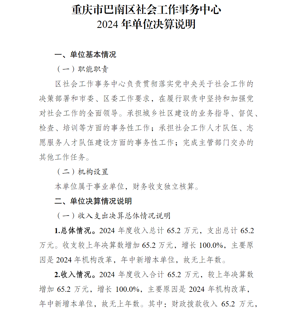 重庆市巴南区社会工作事务中心2024年单位决算说明及附表