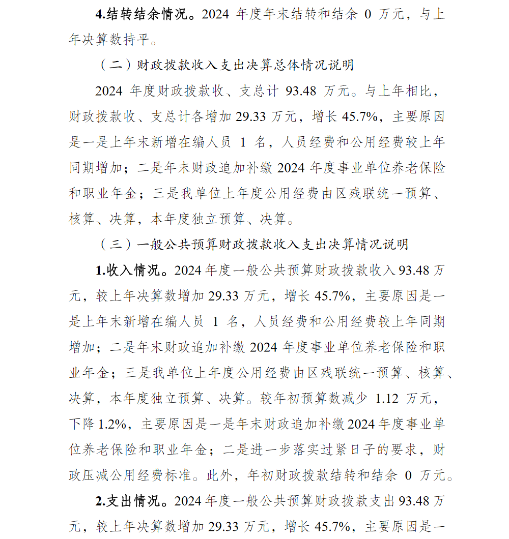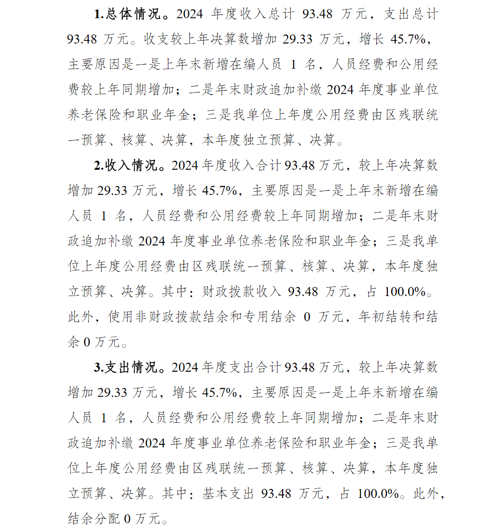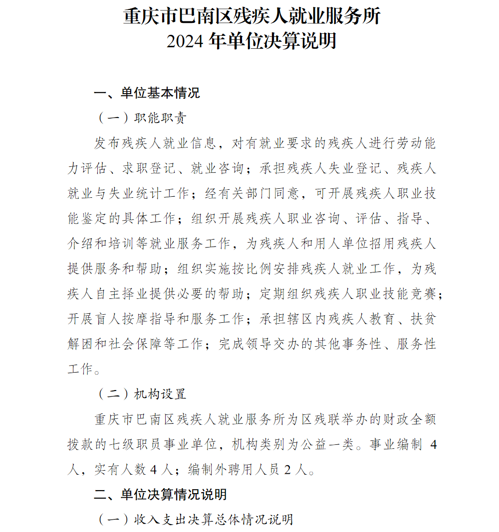 重庆市巴南区残疾人就业服务所2024年单位决算说明及附表