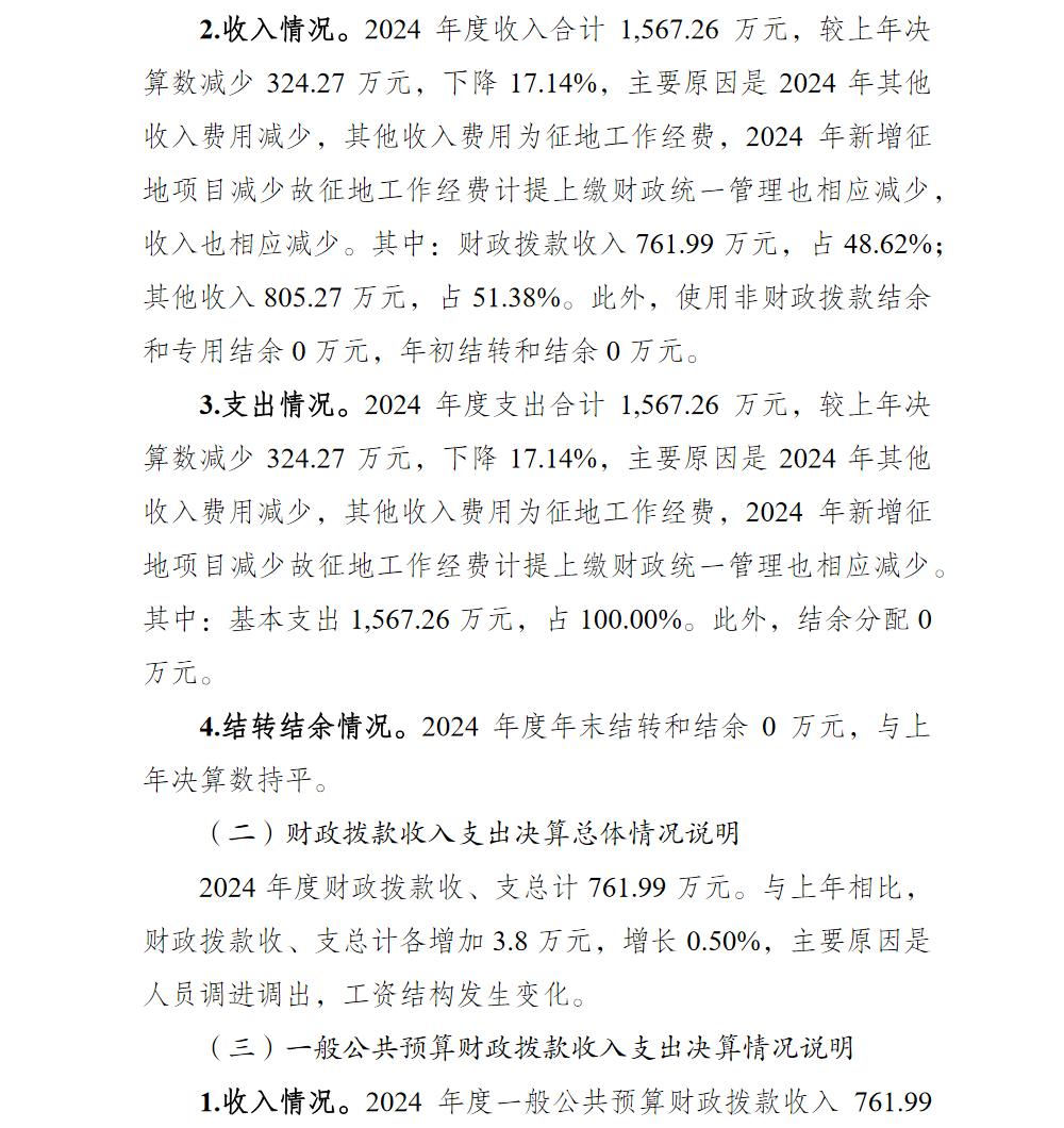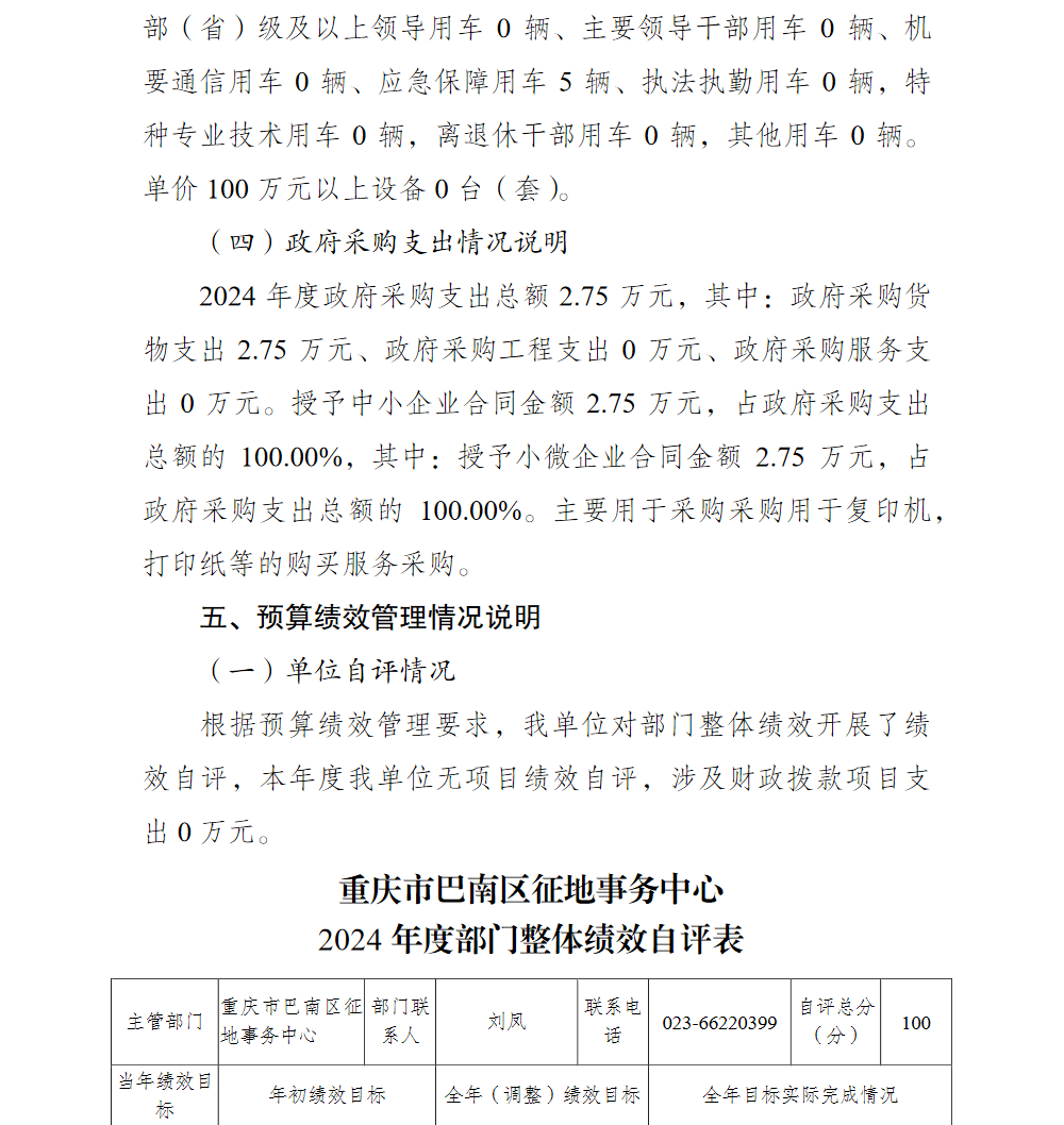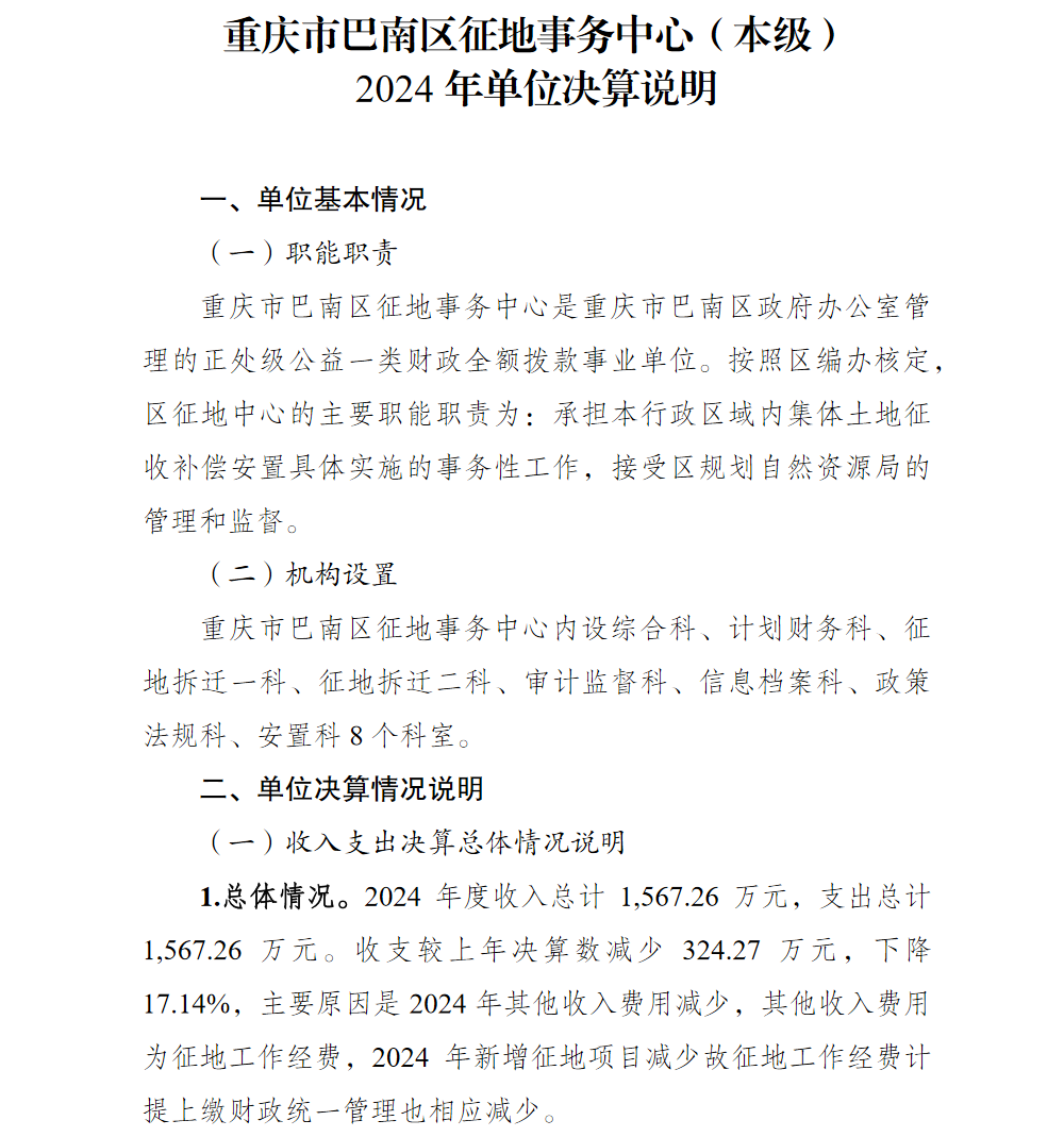 重庆市巴南区征地事务中心(本级)2024年单位决算说明及附表