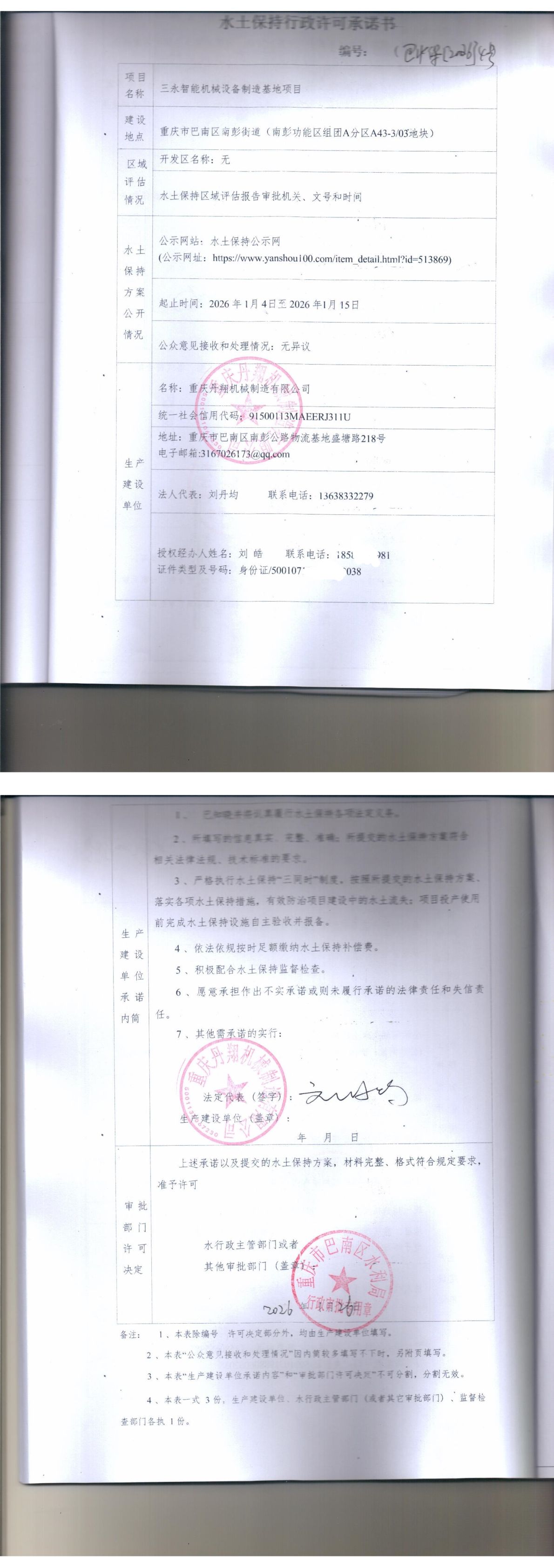 重庆市巴南区水利局三永智能机械设备制造基地项目水土保持行政许可承诺书