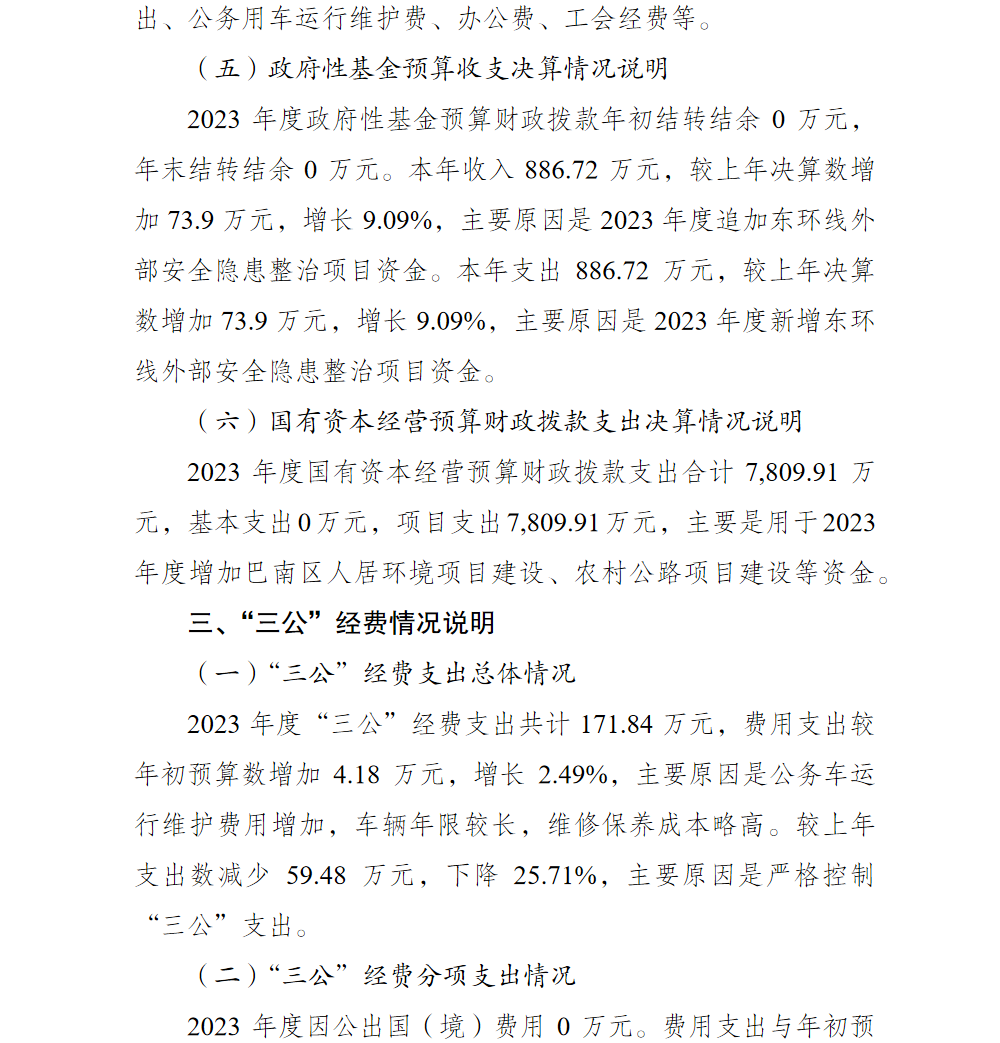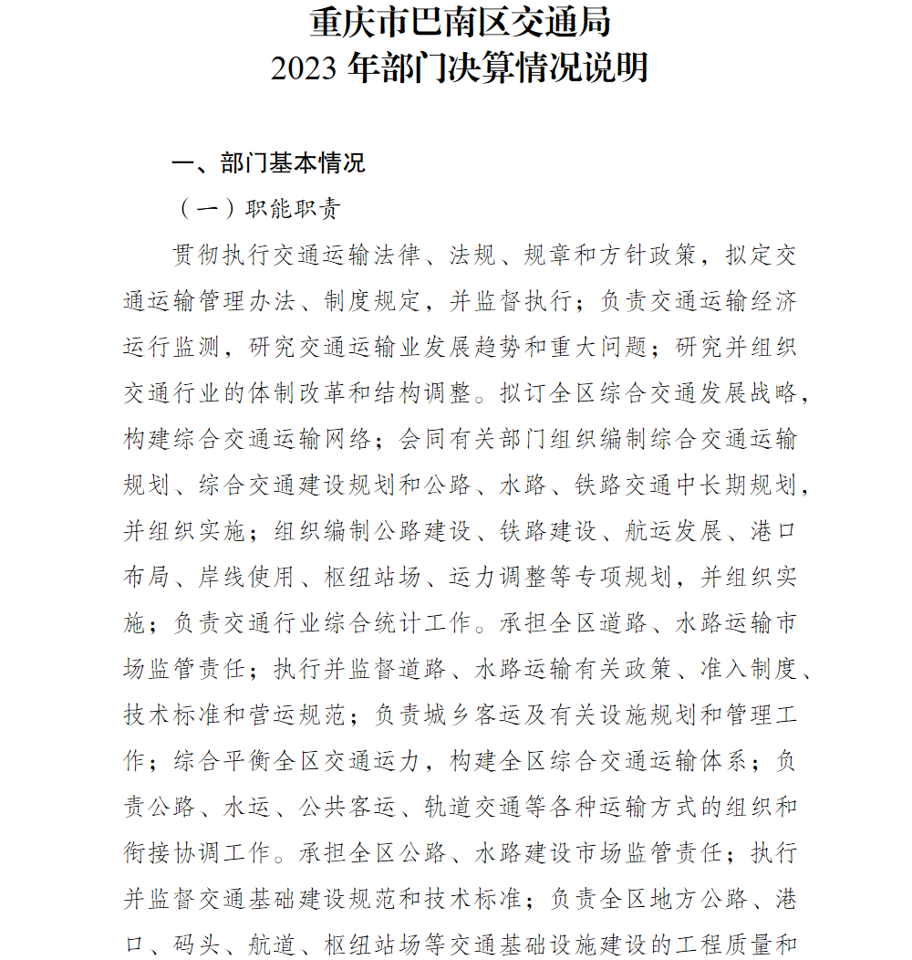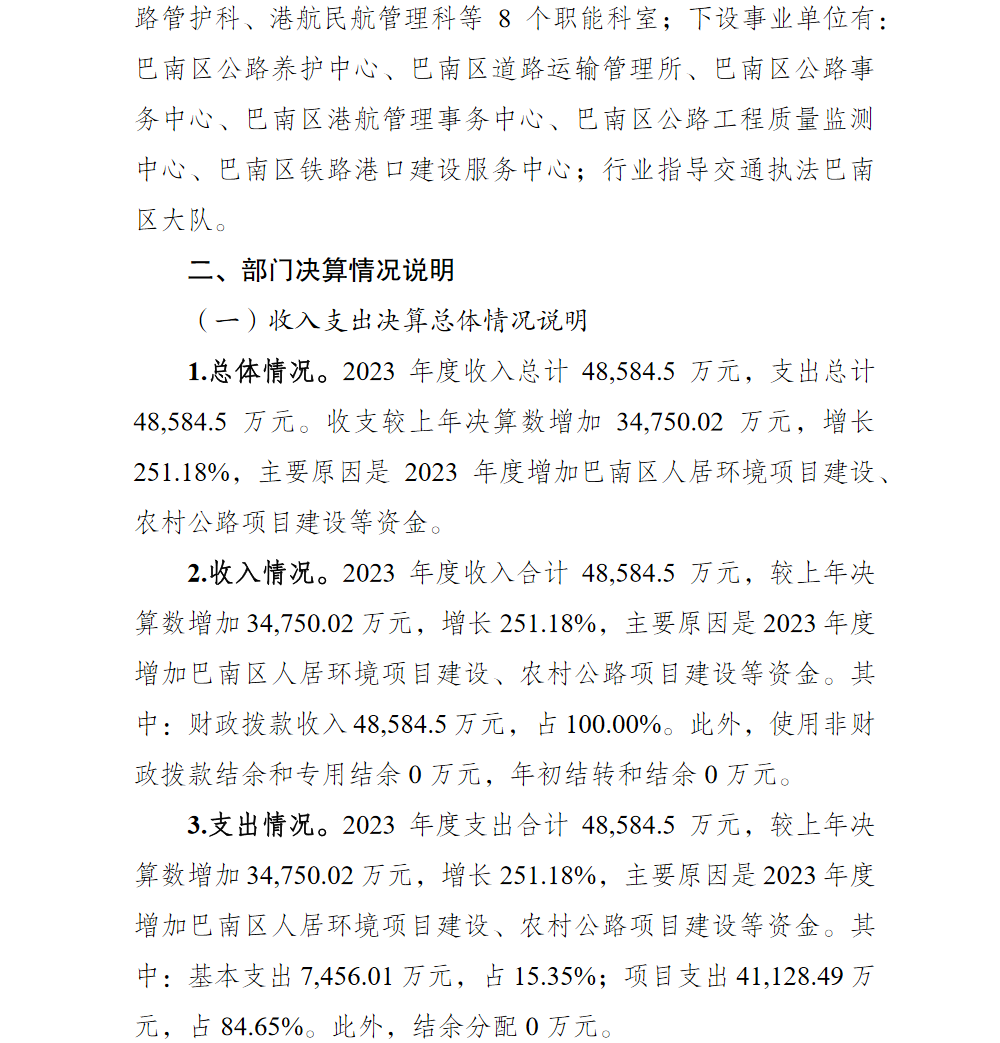 重庆市巴南区交通局2023年部门决算情况说明