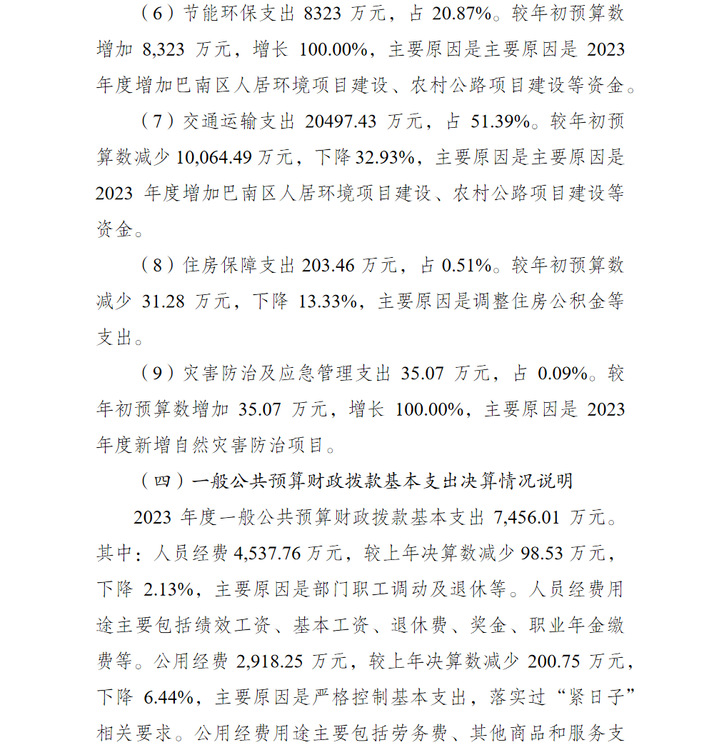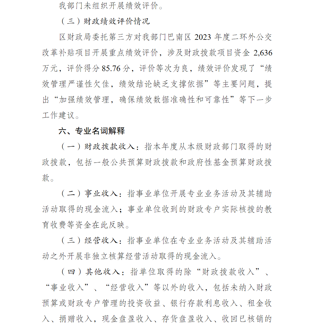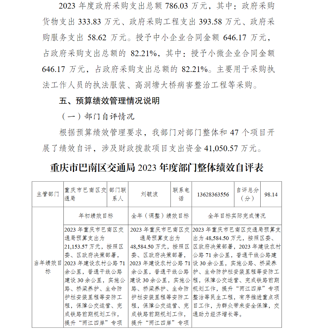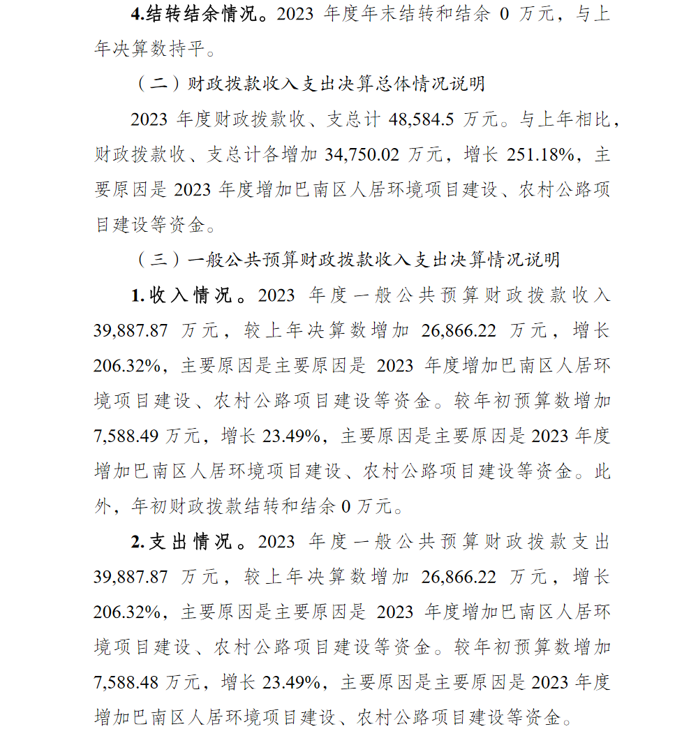 重庆市巴南区交通局2023年部门决算情况说明