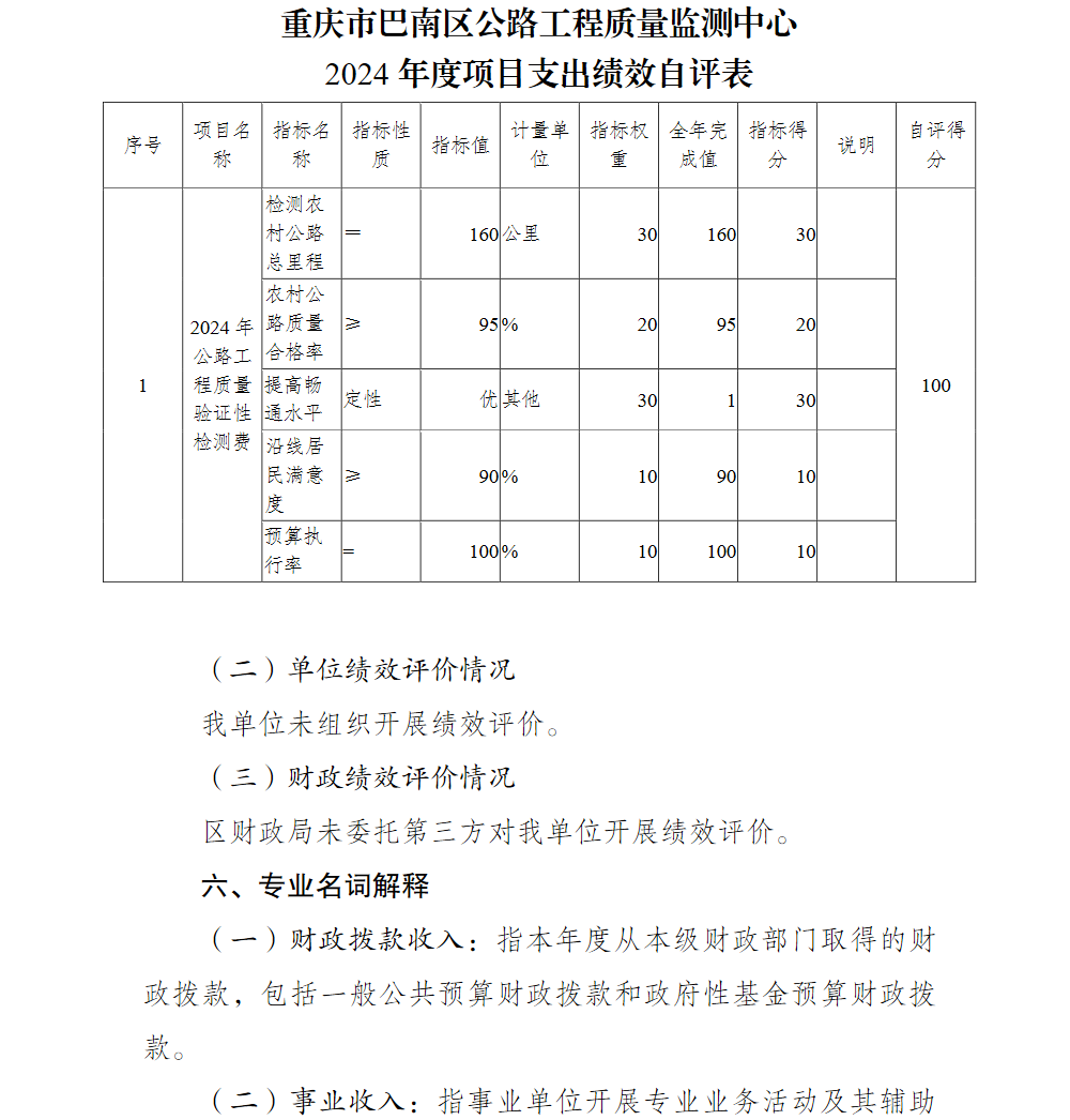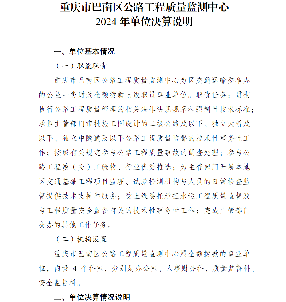 重庆市巴南区公路工程质量监测中心2024年单位决算说明