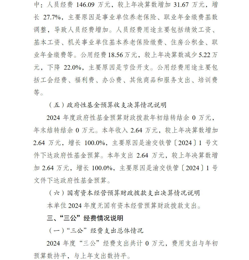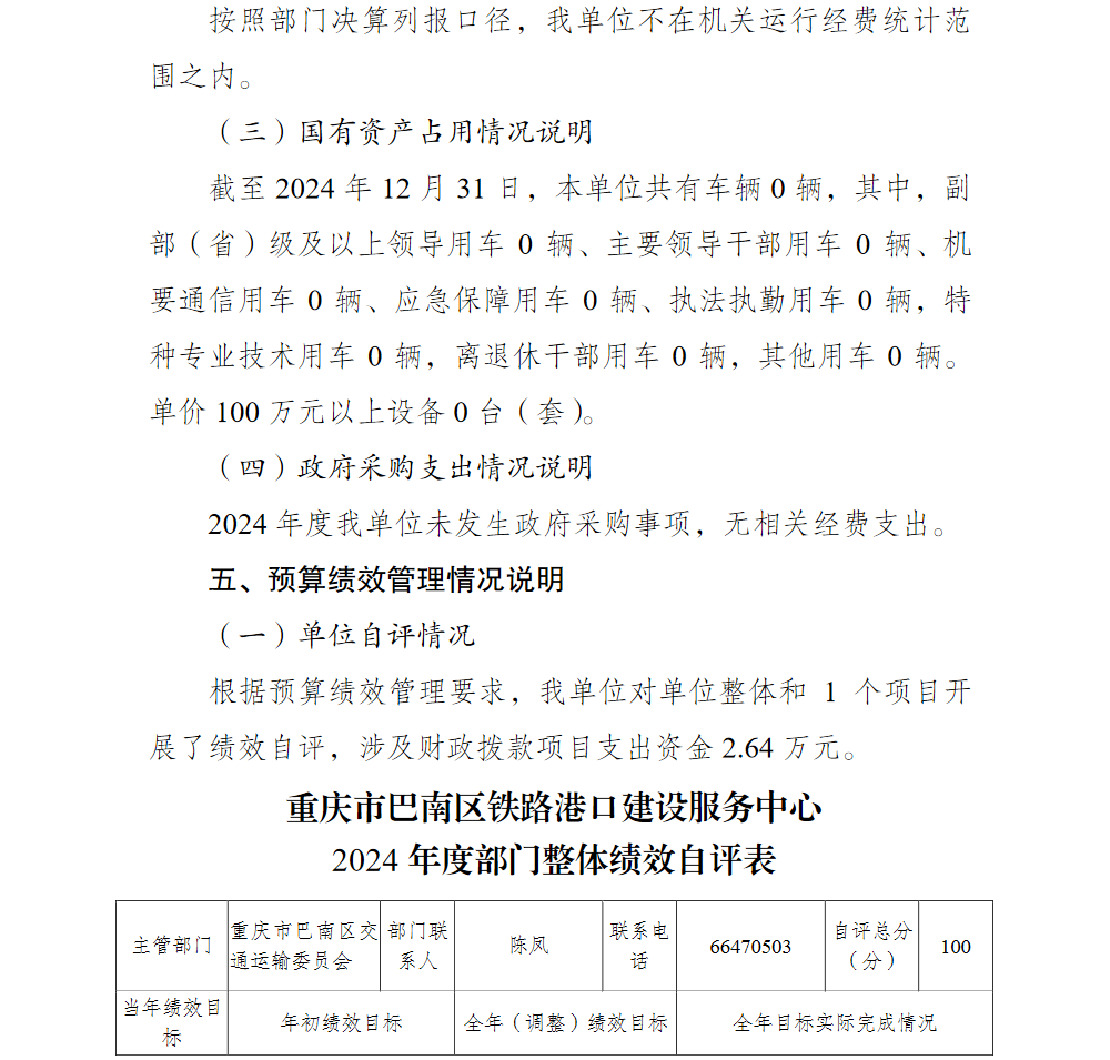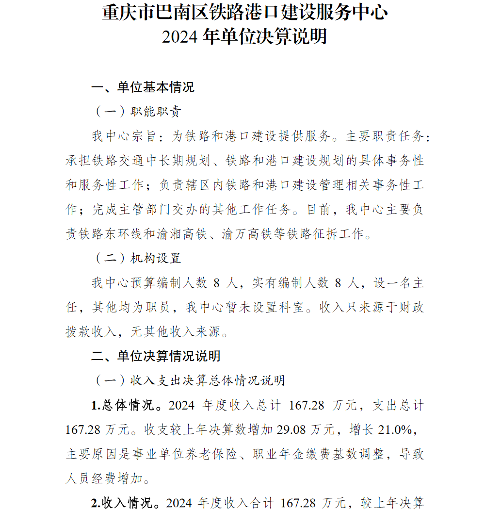 重庆市巴南区铁路港口建设服务中心2024年单位决算说明