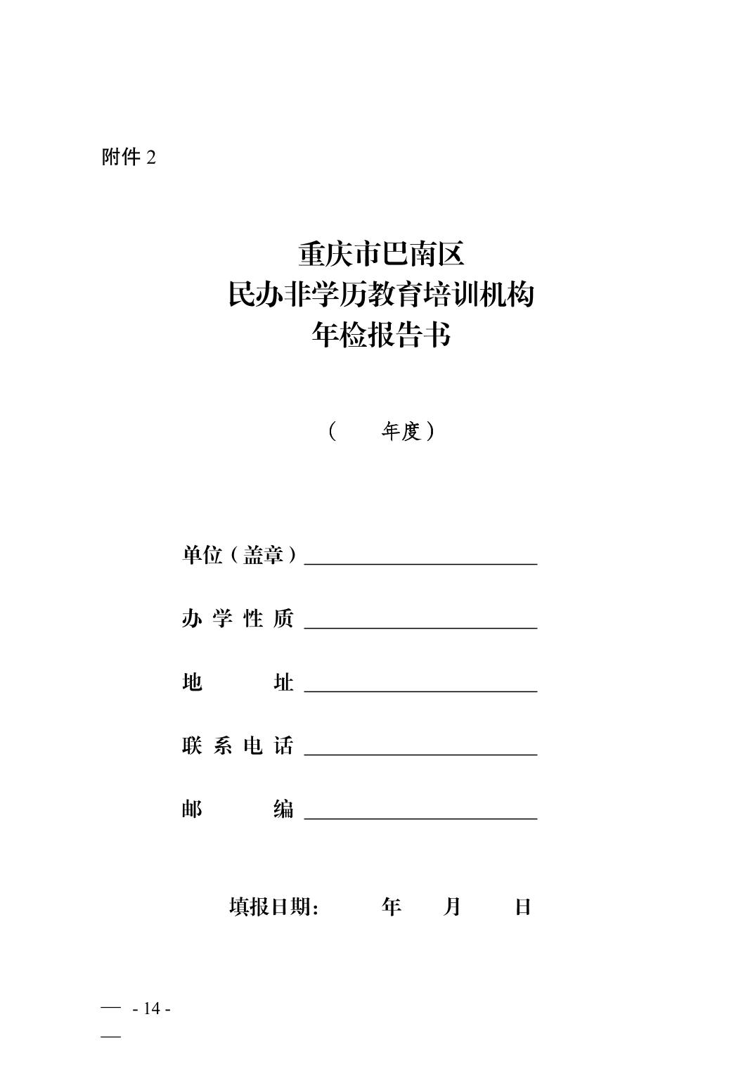 2.重庆市巴南区民办非学历教育培训机构年检报告书