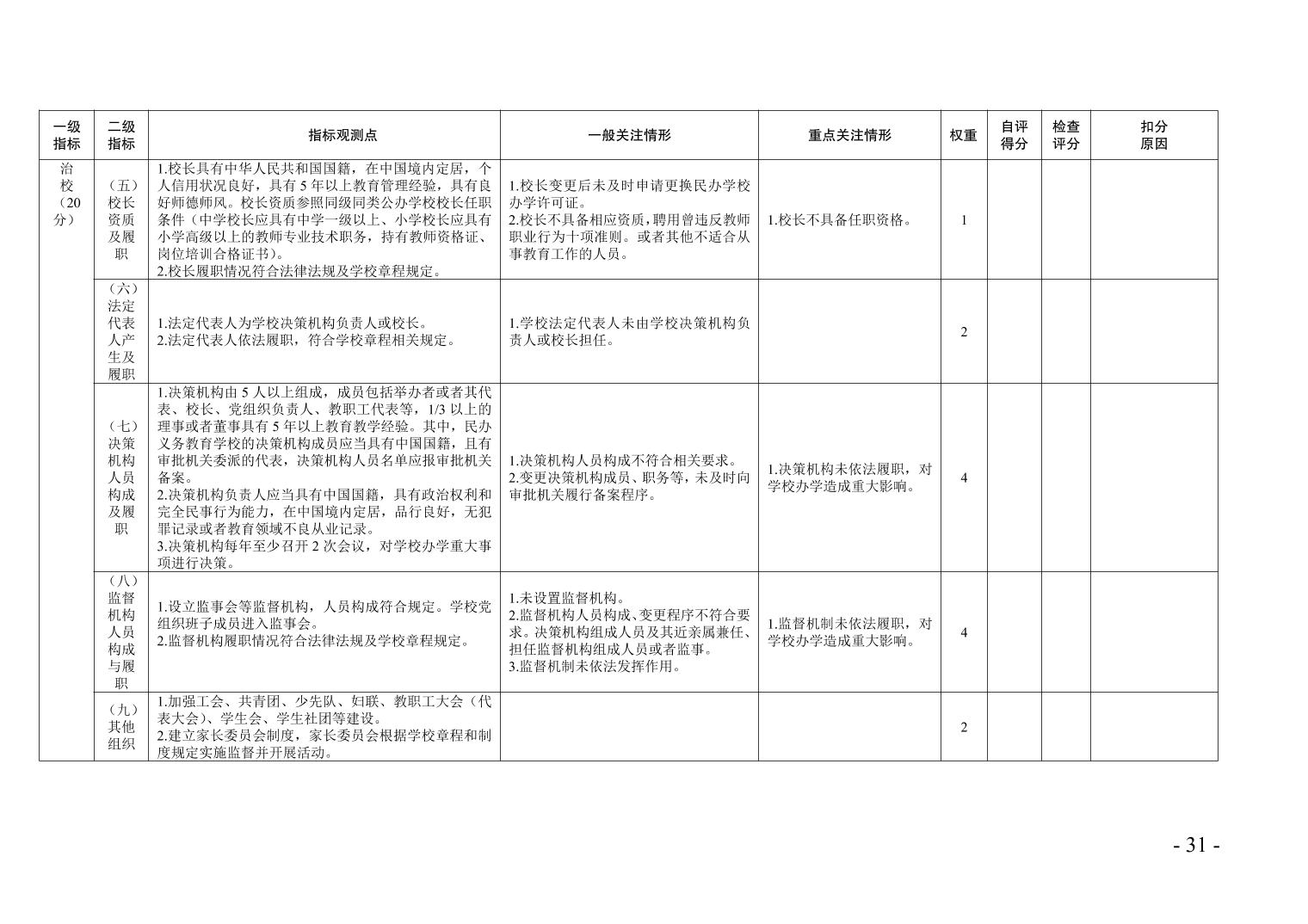 3.重庆市巴南区民办学历教育学校年检指标评定表