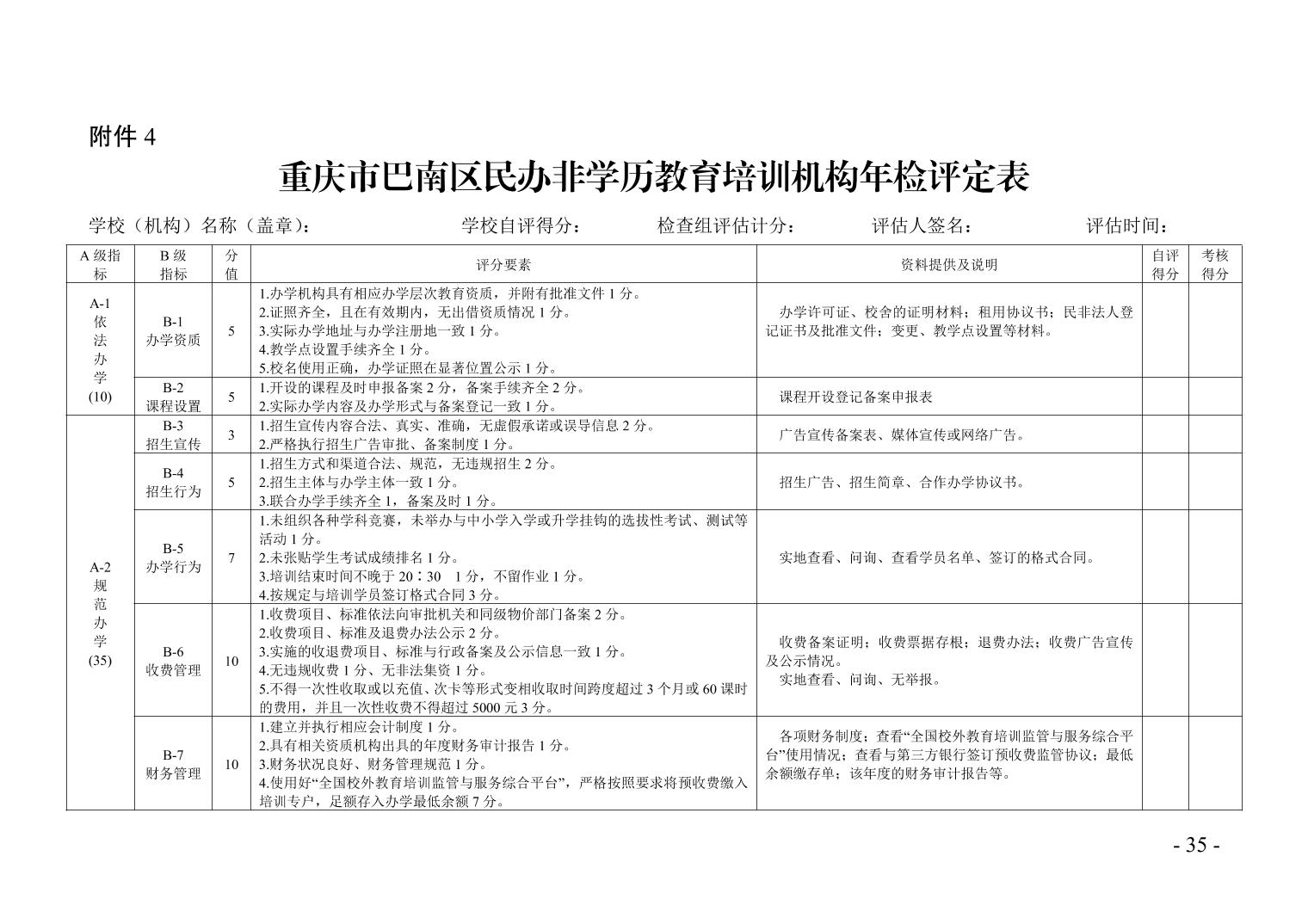 4.重庆市巴南区民办非学历教育培训机构年检评定表