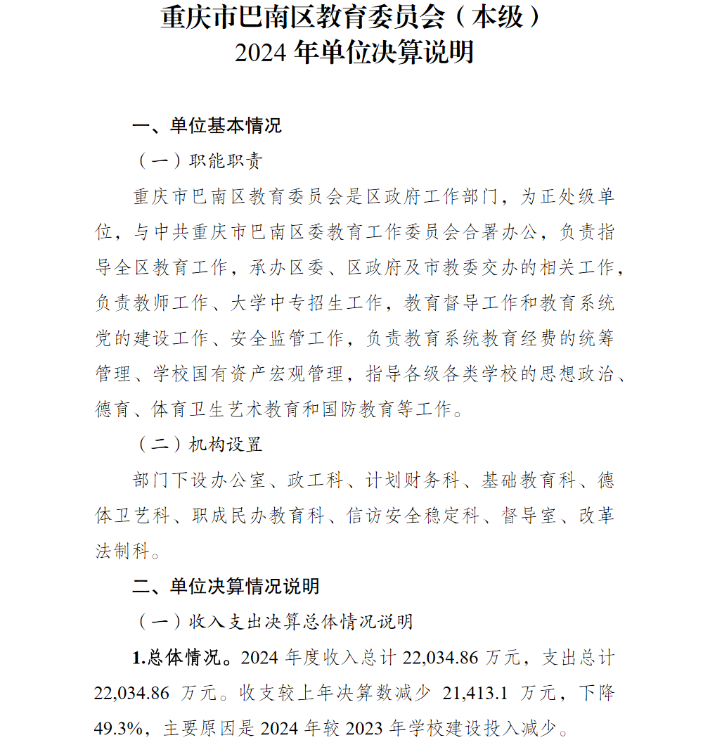 重庆市巴南区教育委员会(本级)2024年单位决算说明