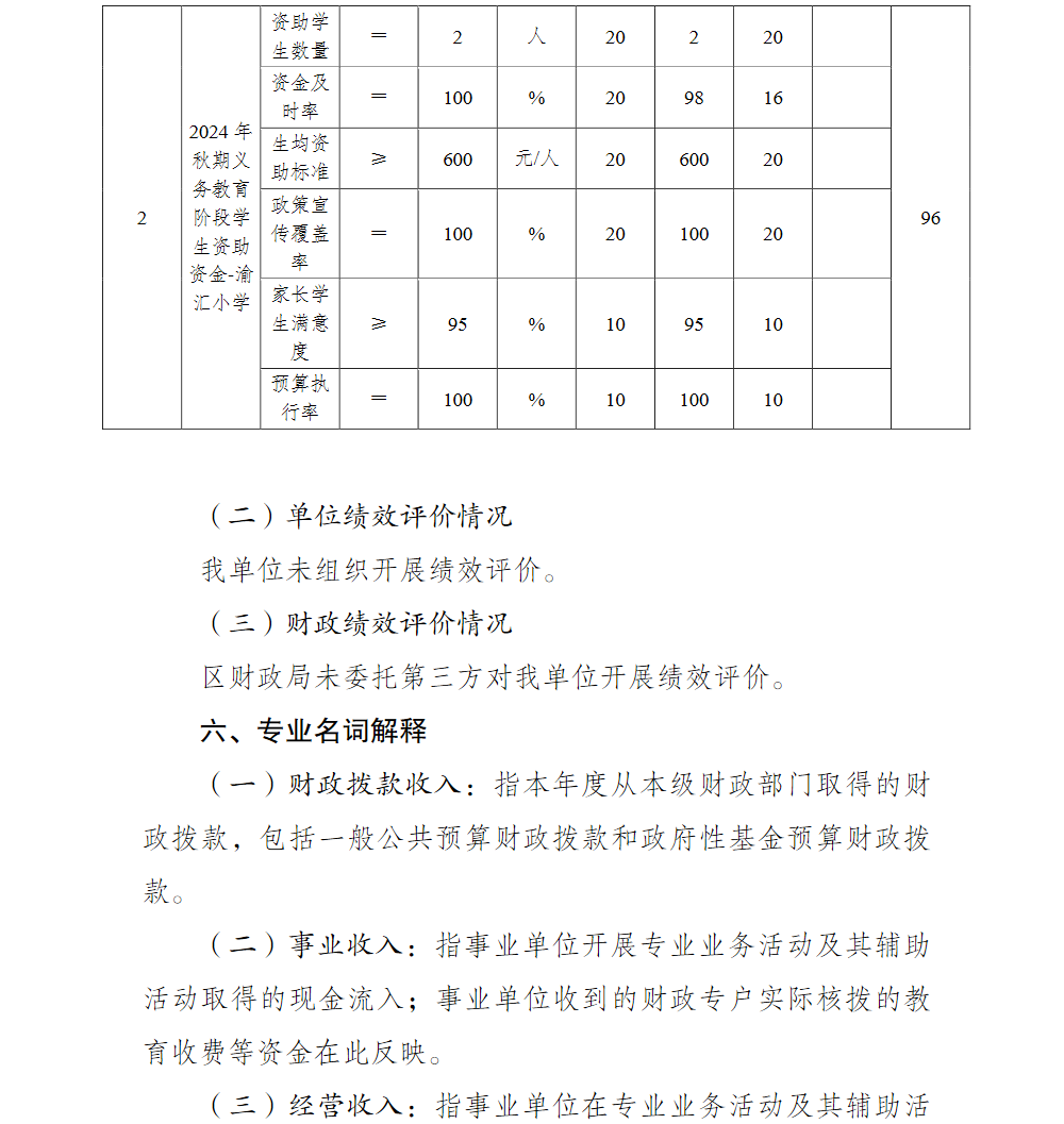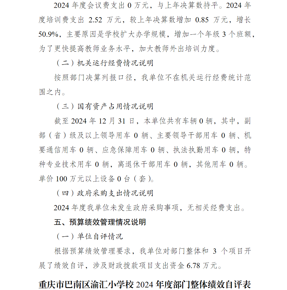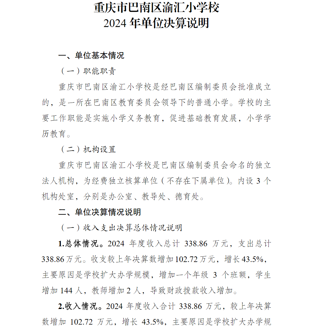 重庆市巴南区渝汇小学校2024年单位决算说明