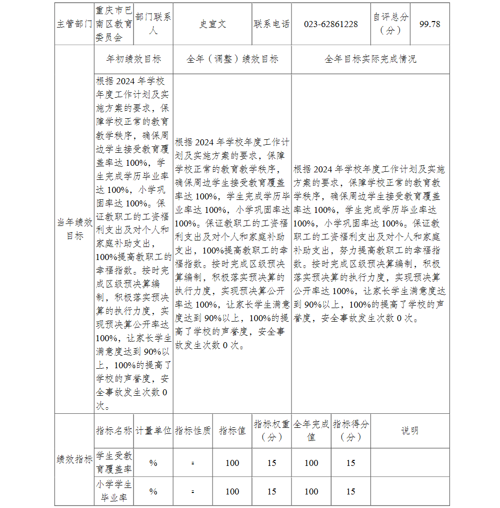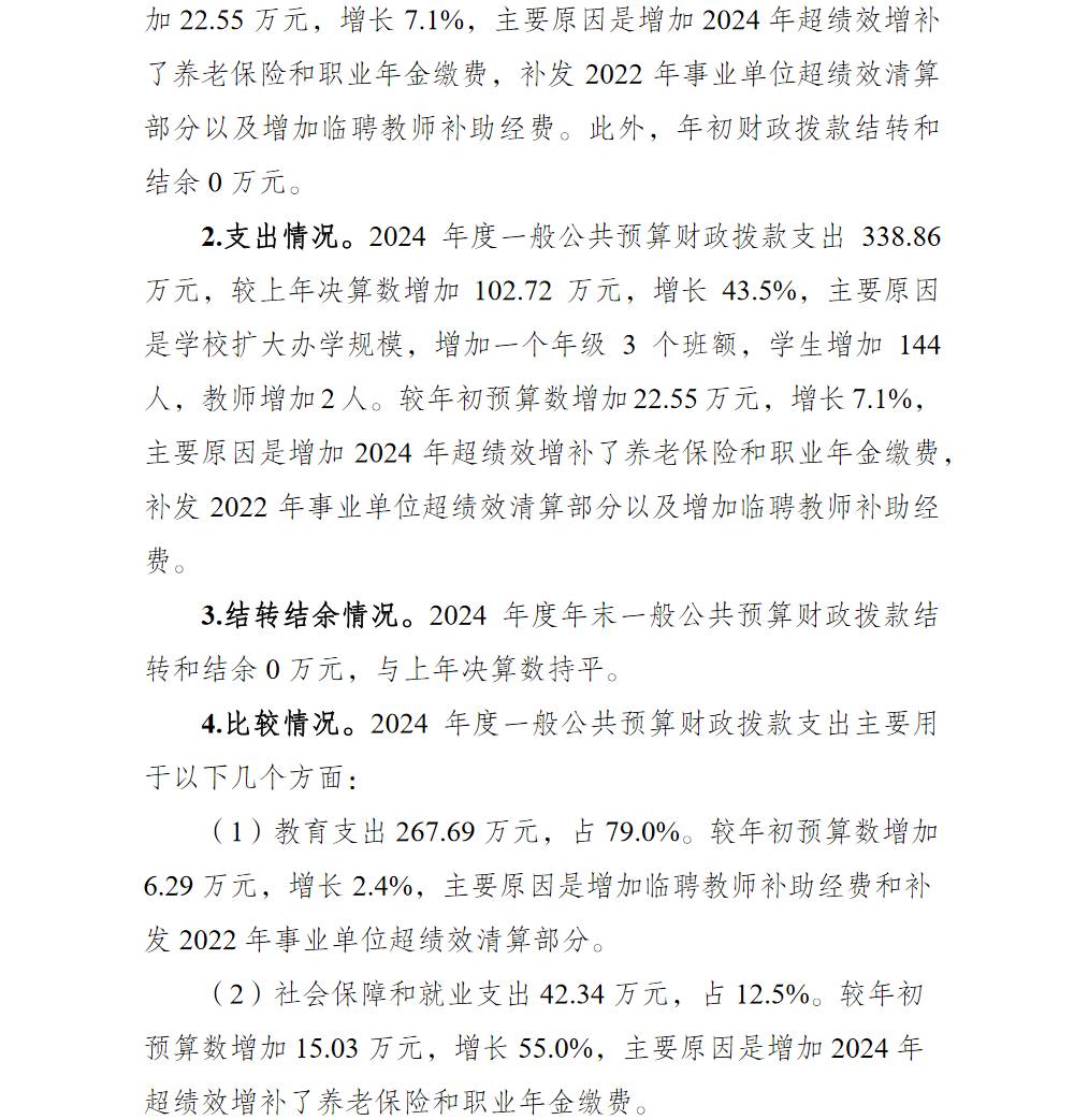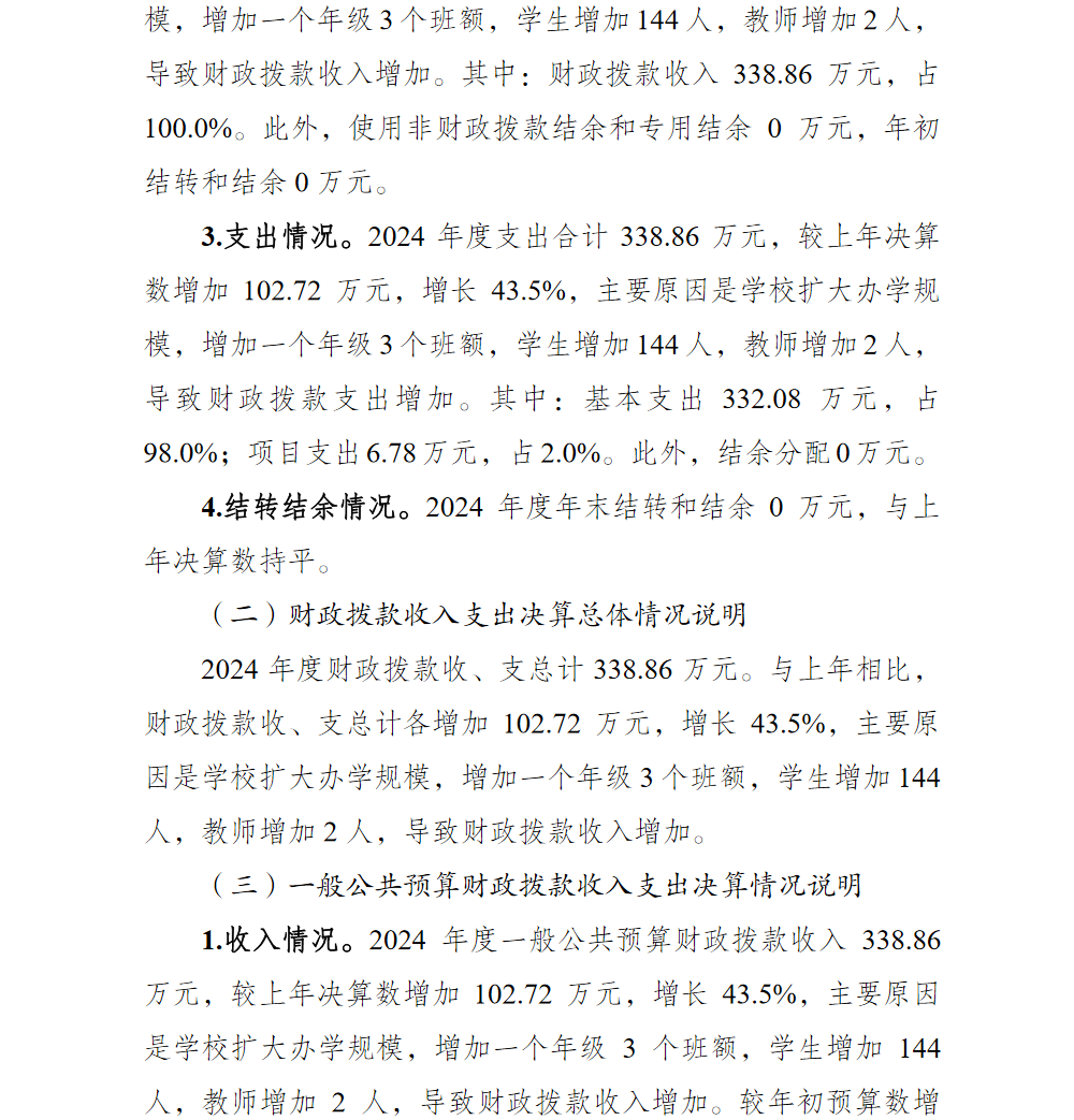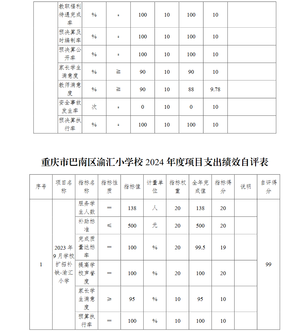 重庆市巴南区渝汇小学校2024年单位决算说明