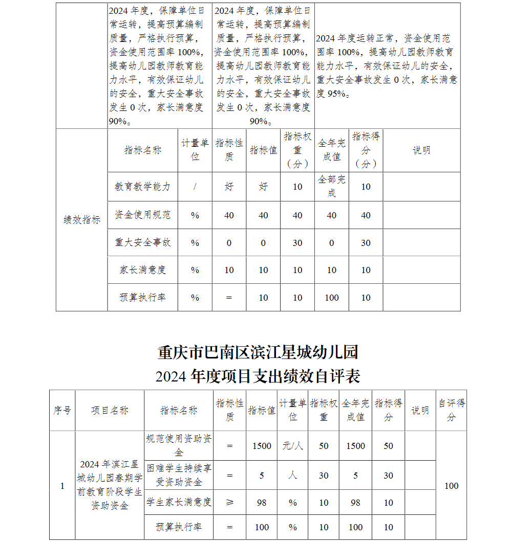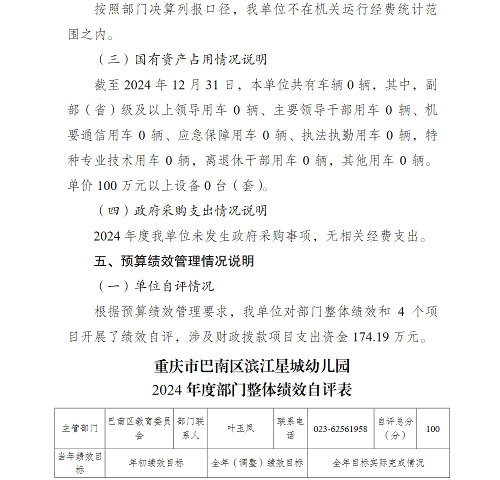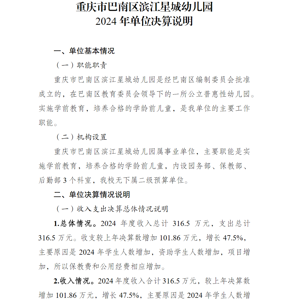 重庆市巴南区滨江星城幼儿园2024年单位决算说明
