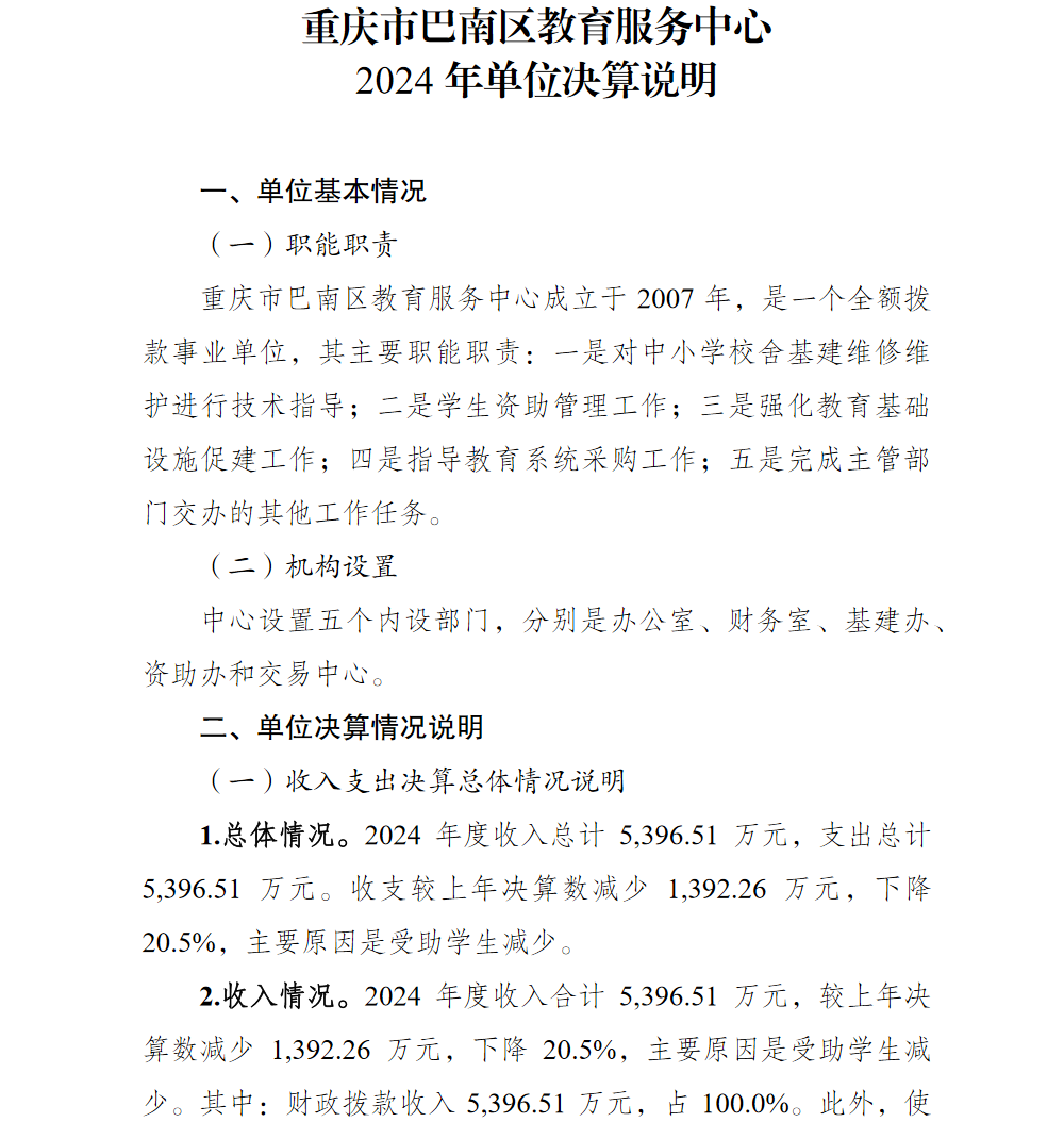 重庆市巴南区教育服务中心2024年单位决算说明