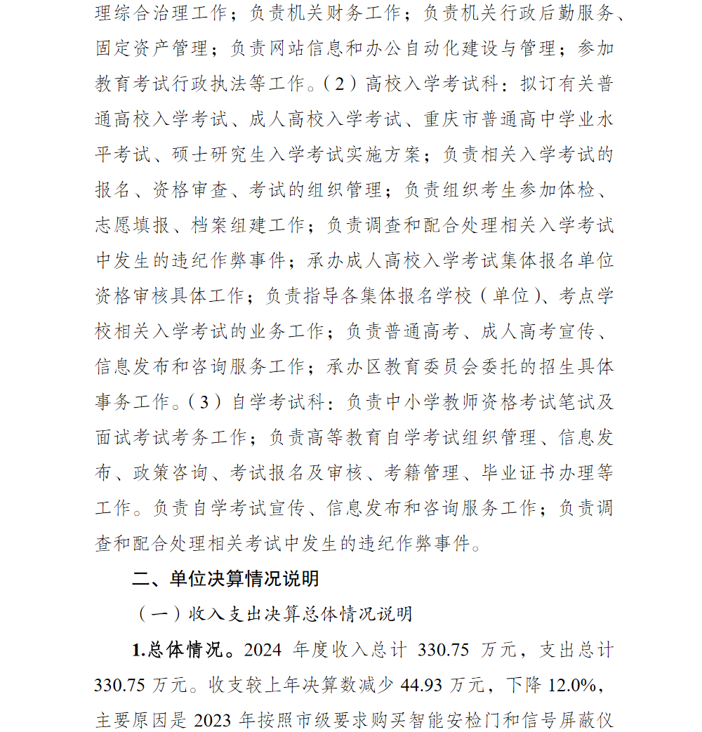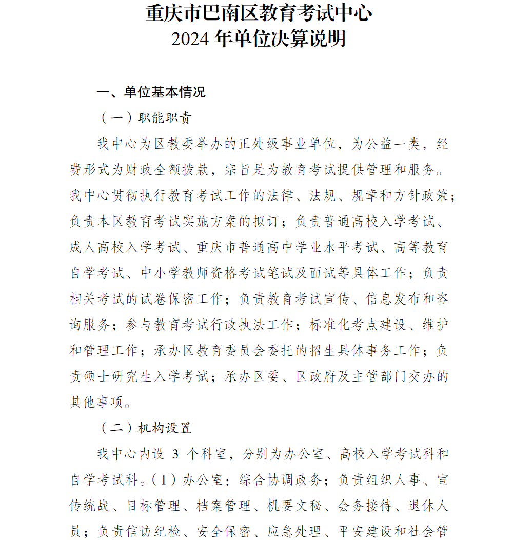 重庆市巴南区教育考试中心2024年单位决算说明
