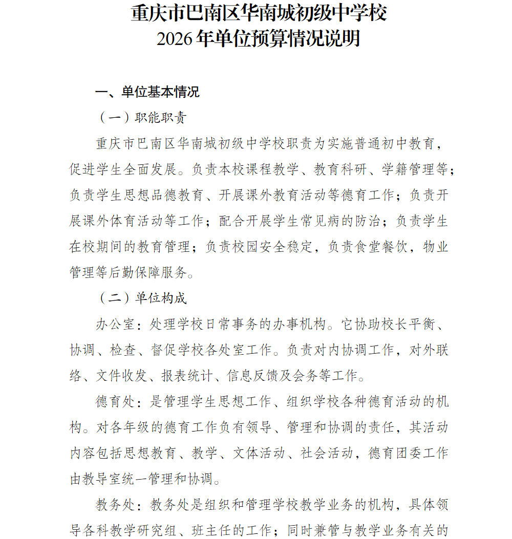 重庆市巴南区华南城初级中学校2026年单位预算情况说明