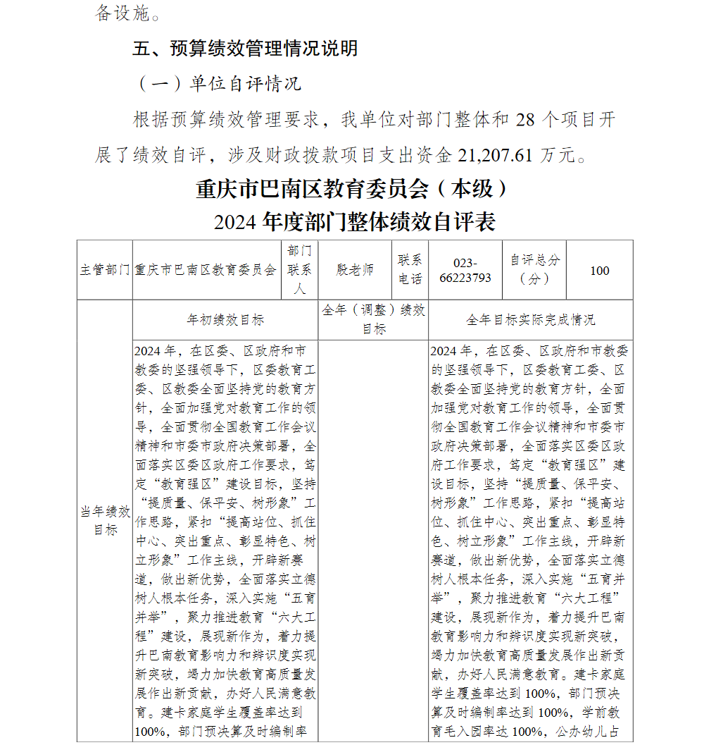 重庆市巴南区教育委员会(本级)2024年单位决算说明