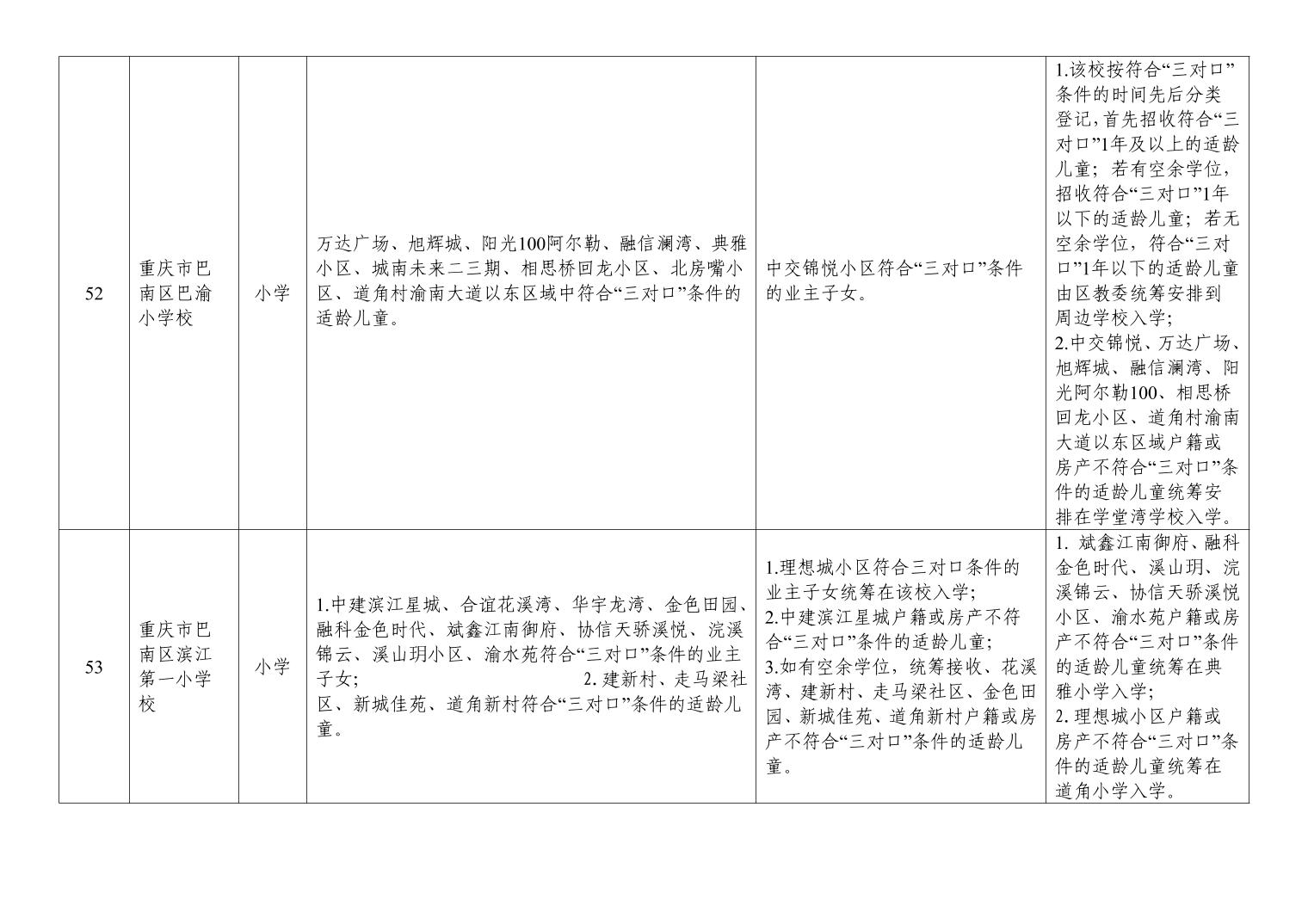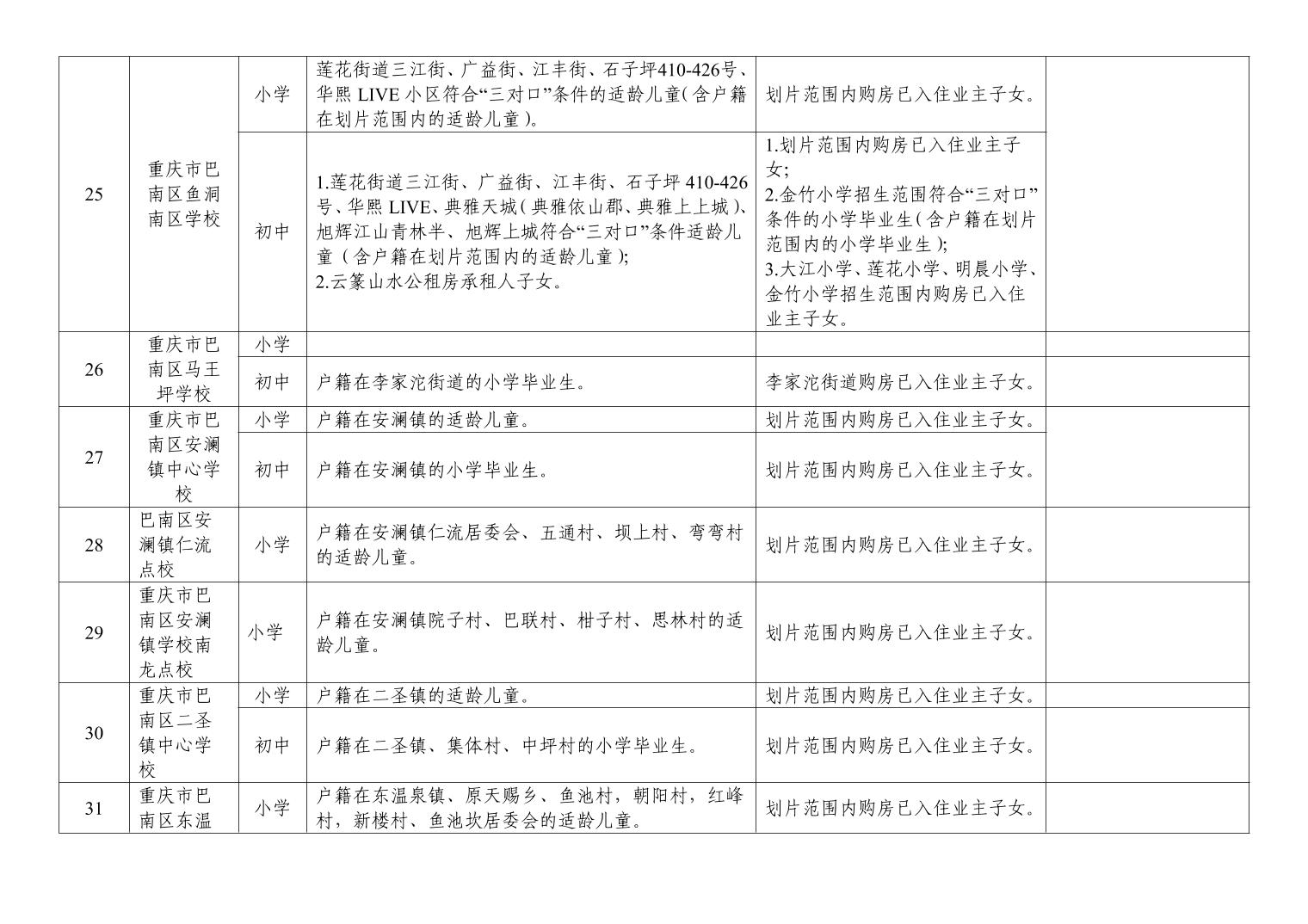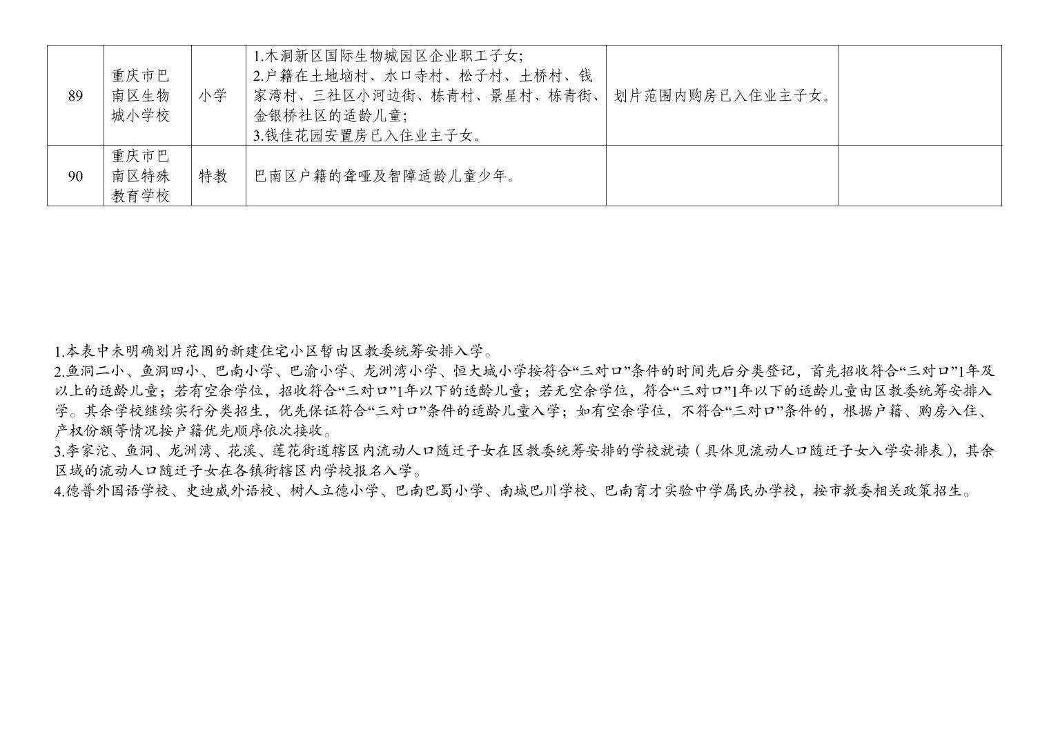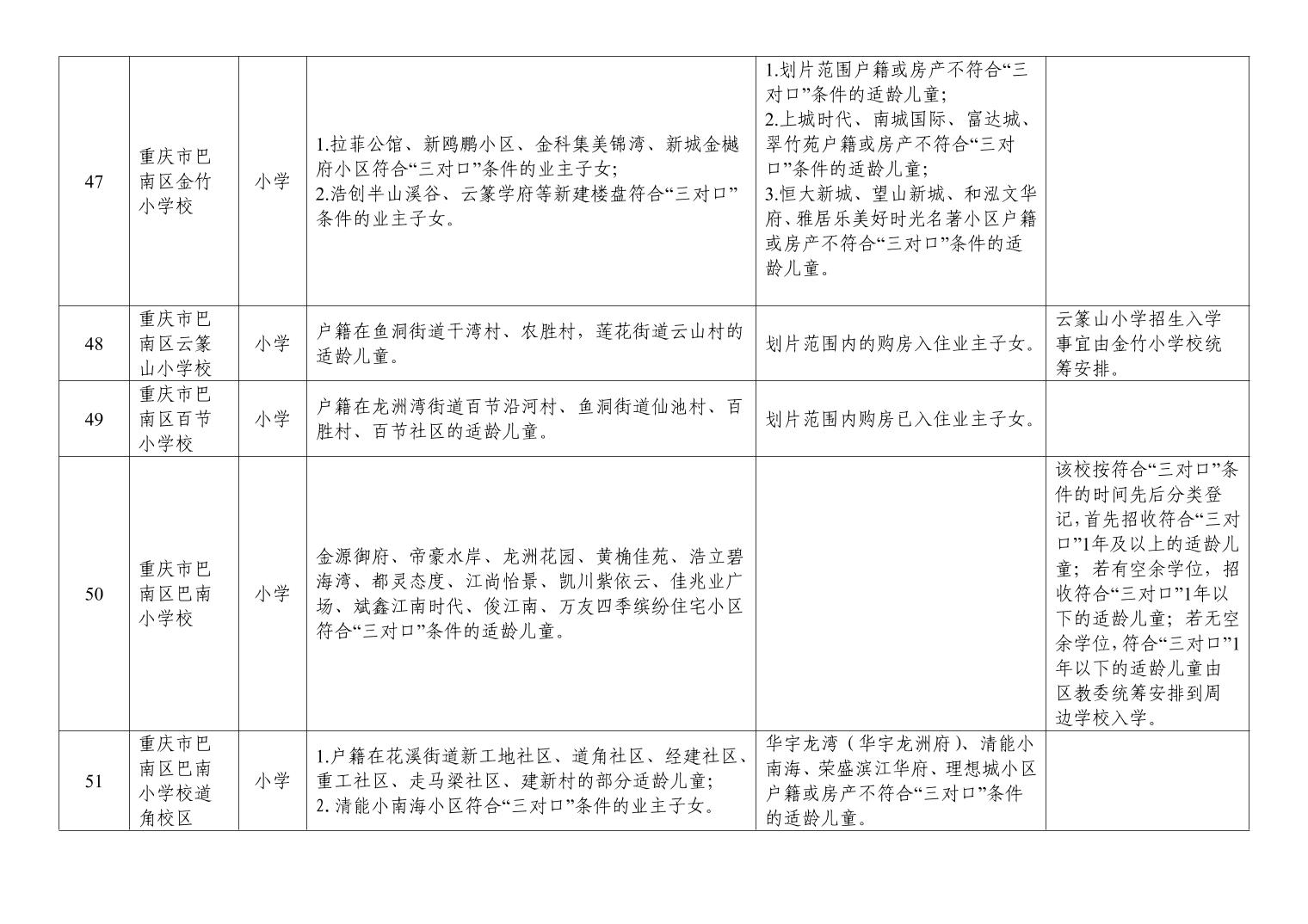 重庆市巴南区2025年义务教育阶段学校招生入学安排一览表