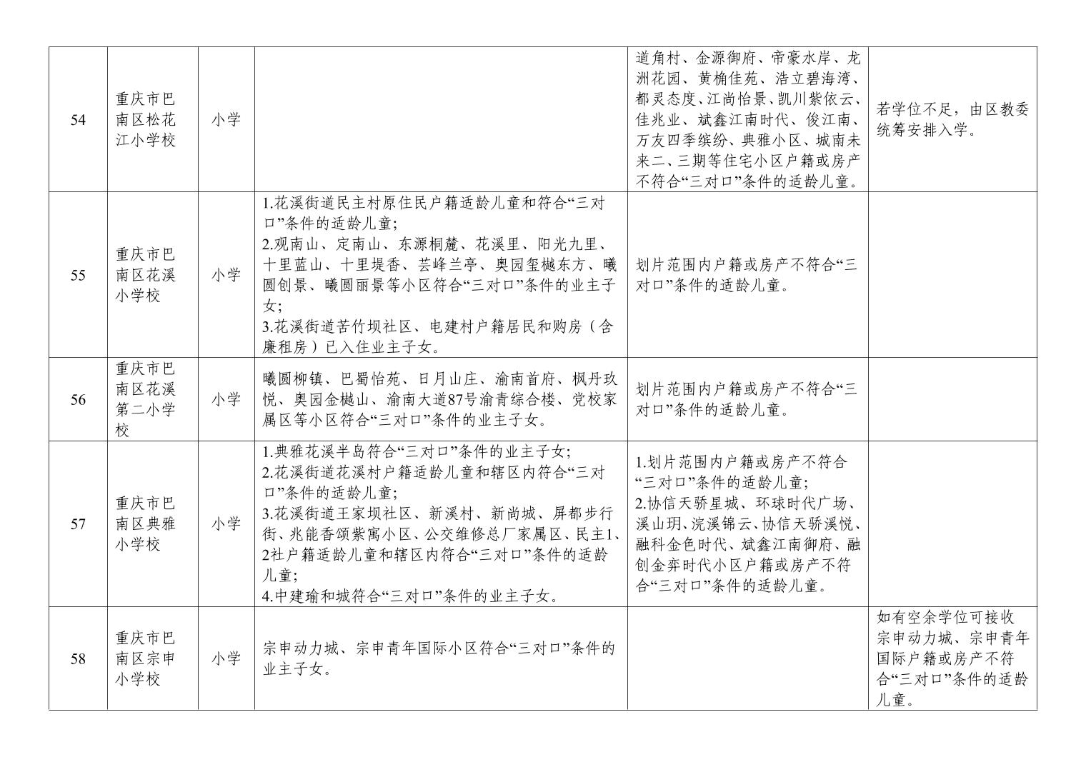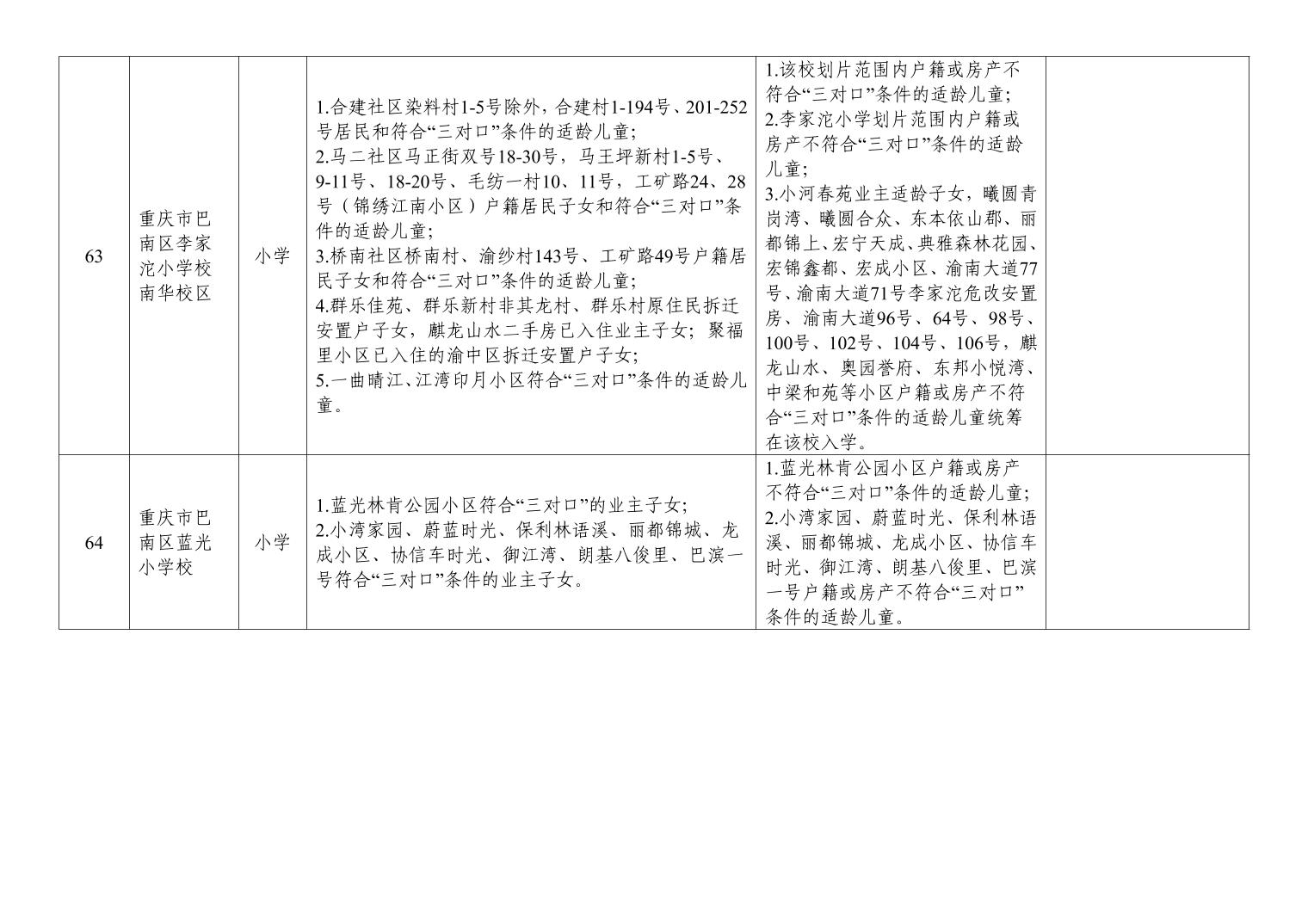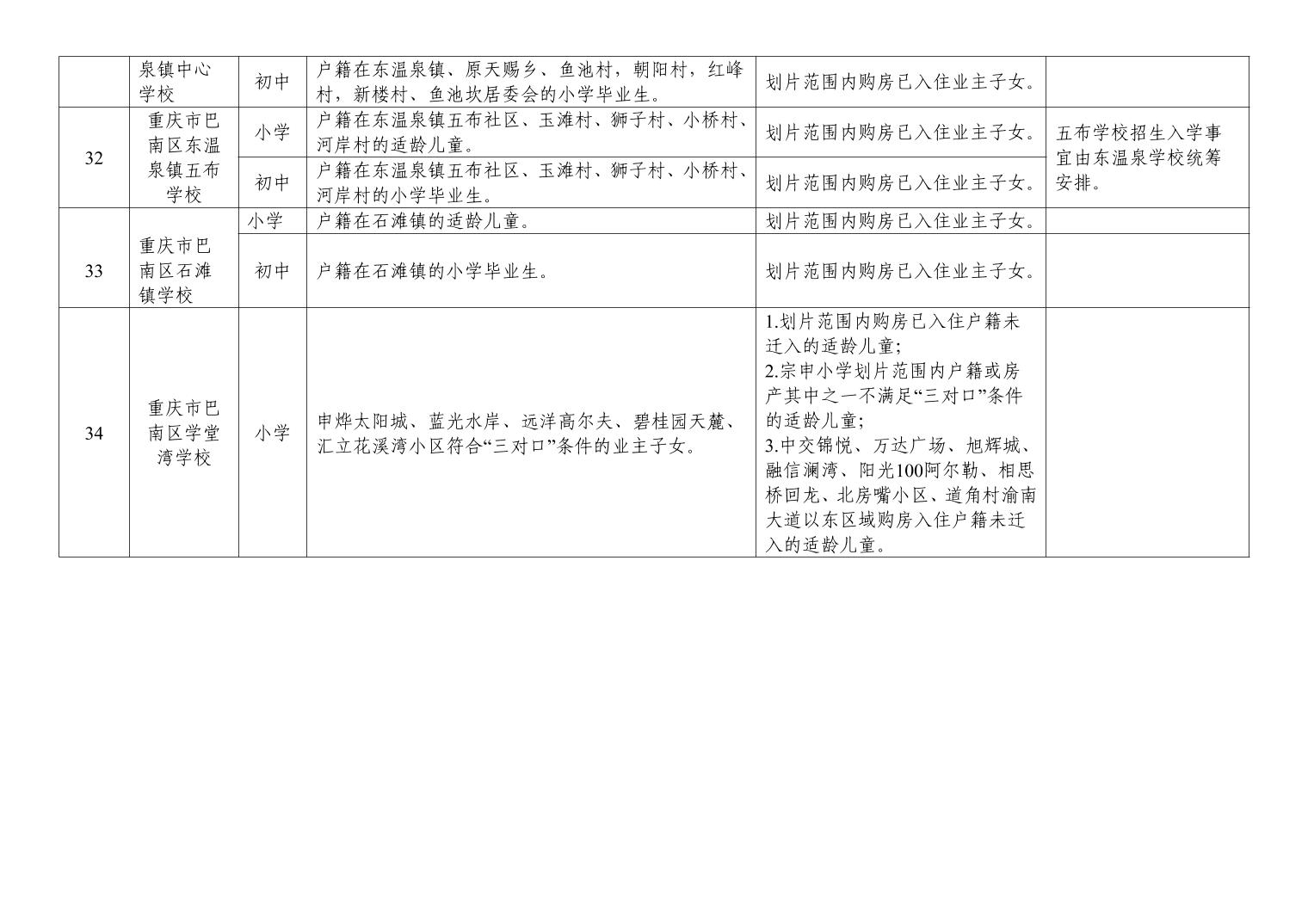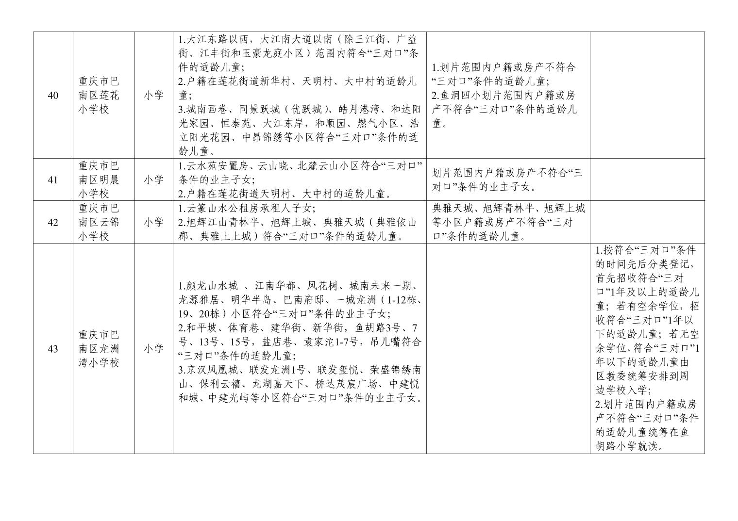 重庆市巴南区2025年义务教育阶段学校招生入学安排一览表