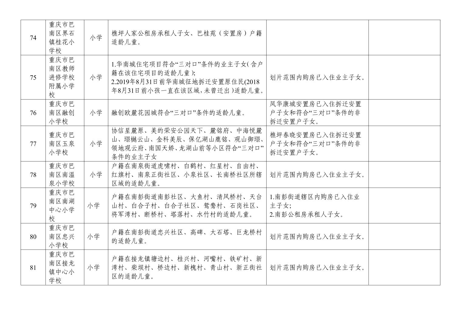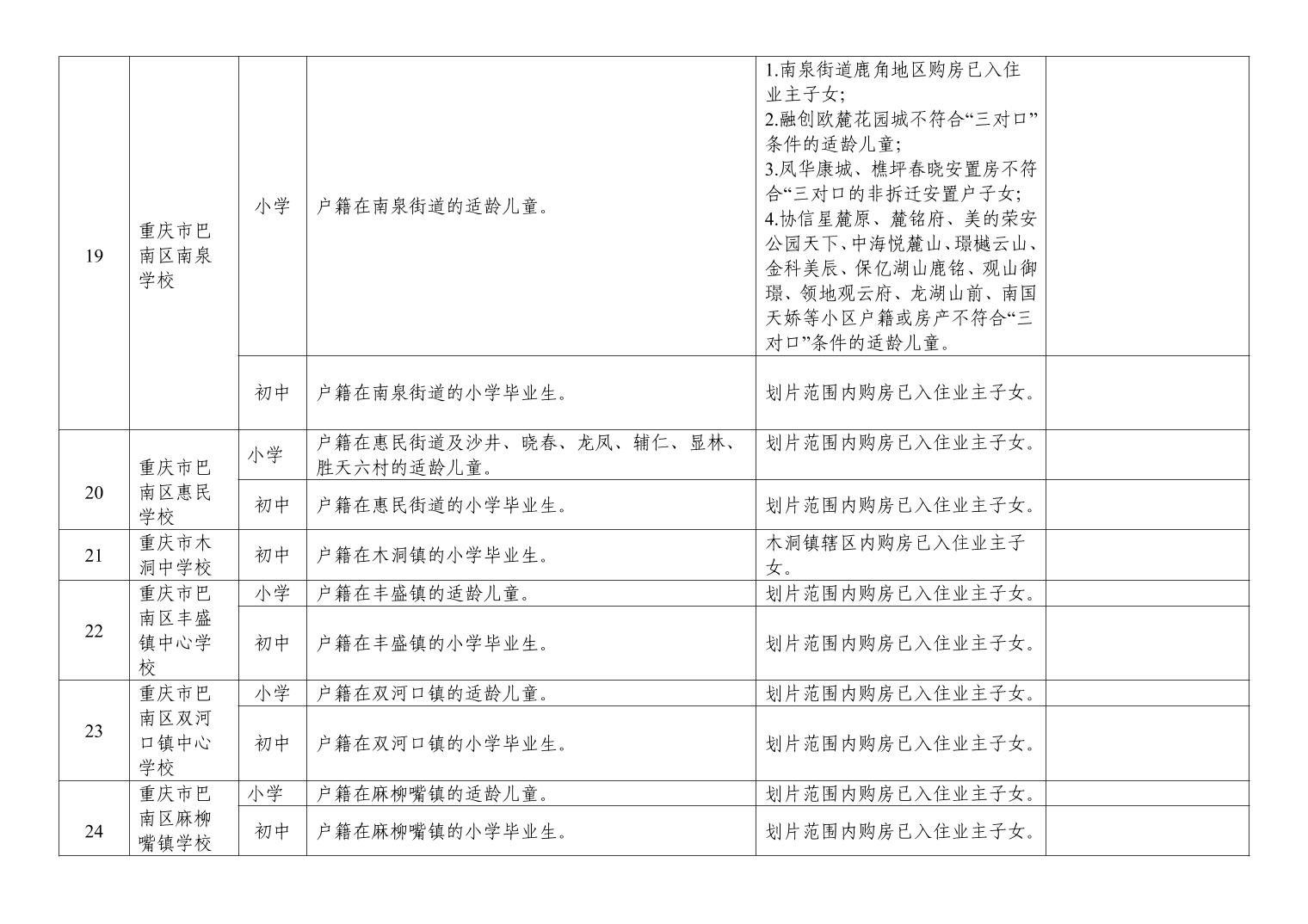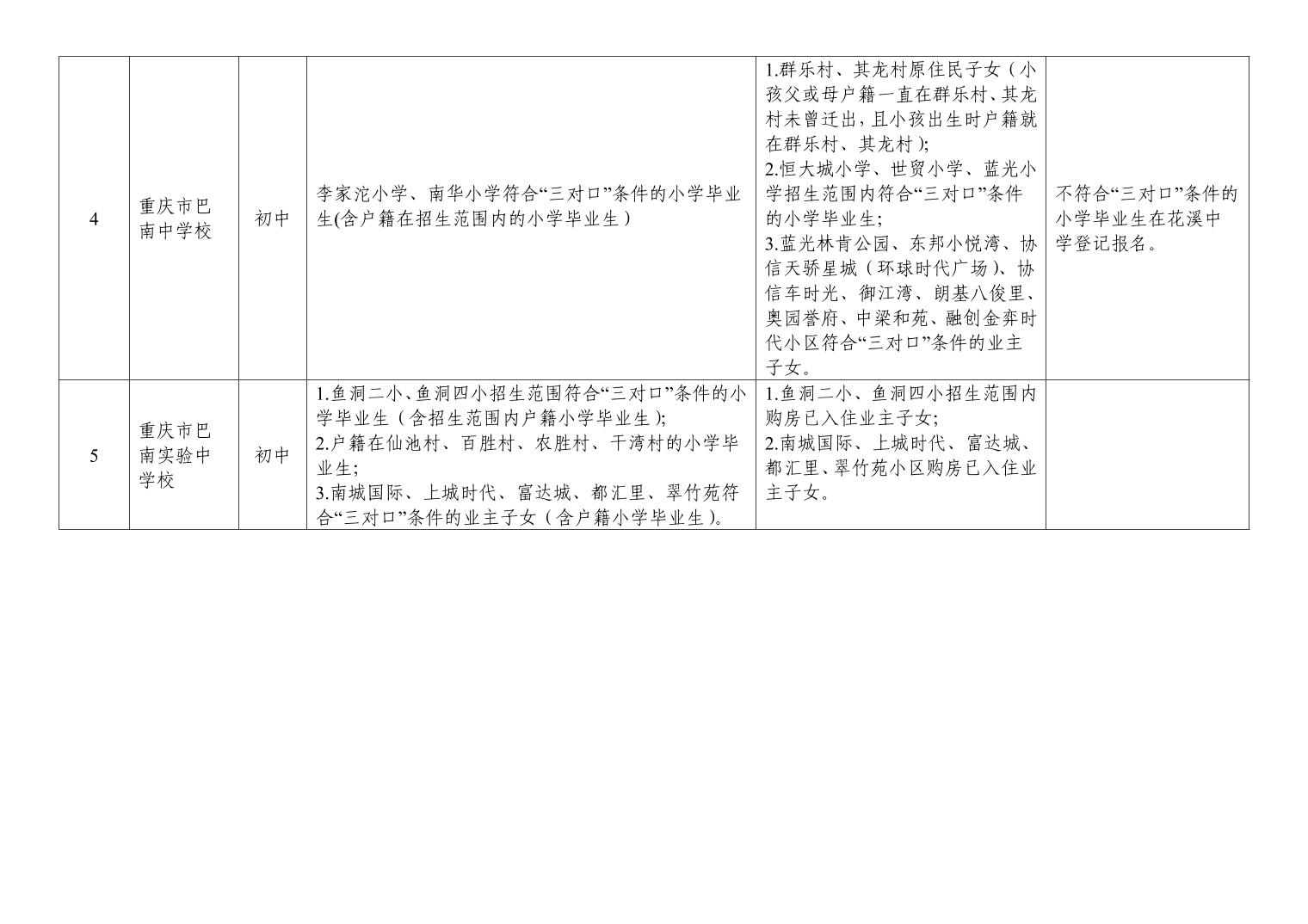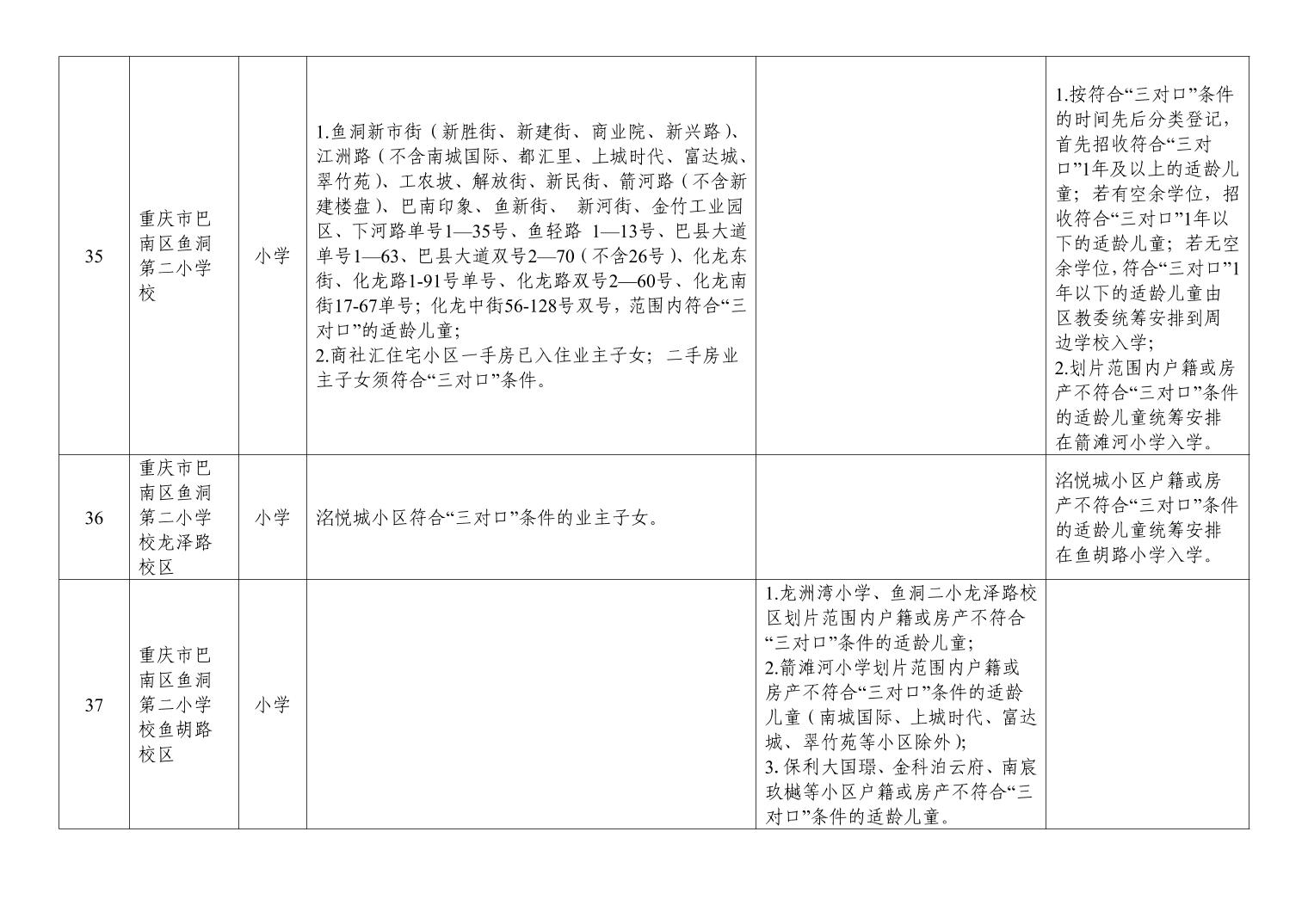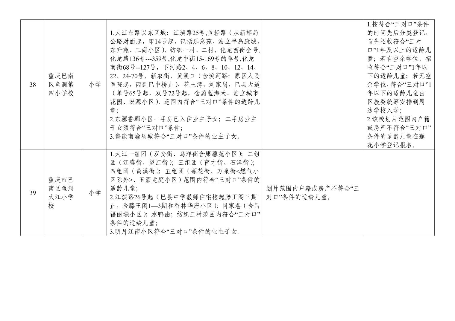 重庆市巴南区2025年义务教育阶段学校招生入学安排一览表