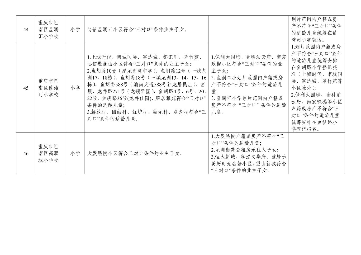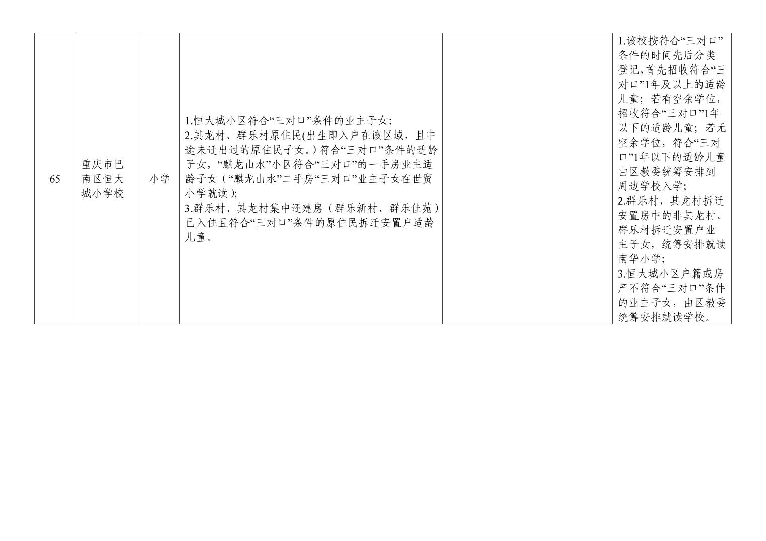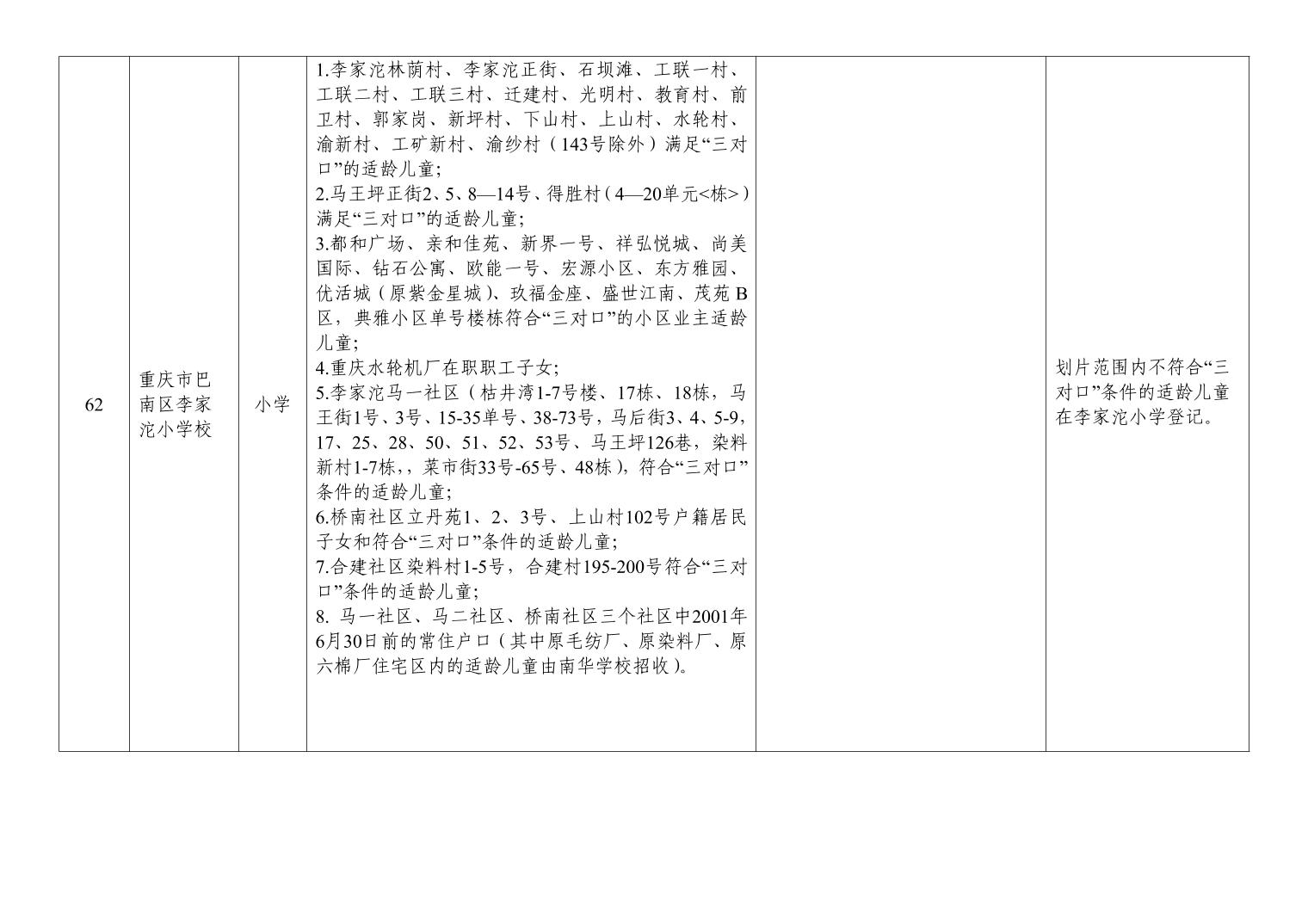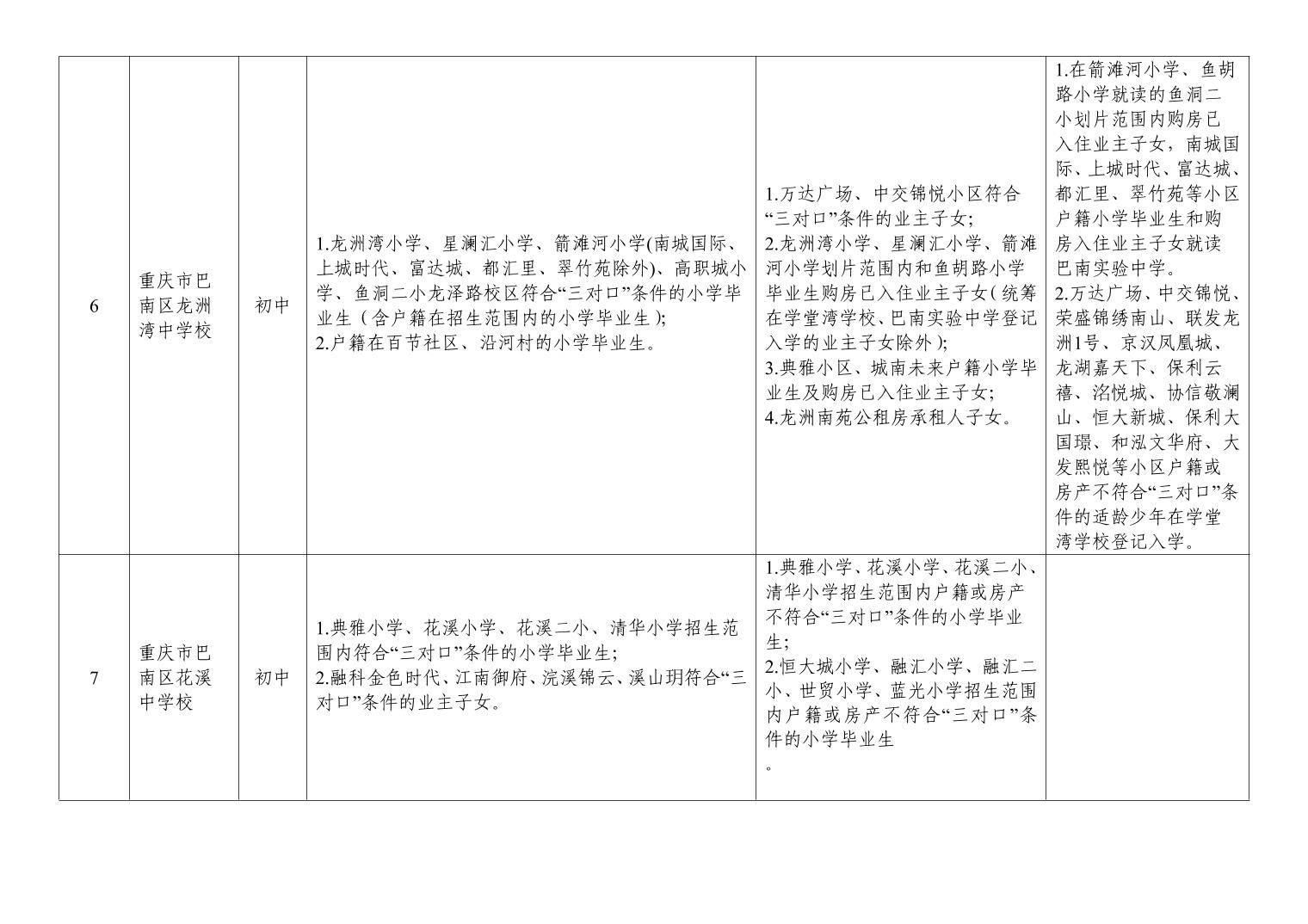 重庆市巴南区2025年义务教育阶段学校招生入学安排一览表