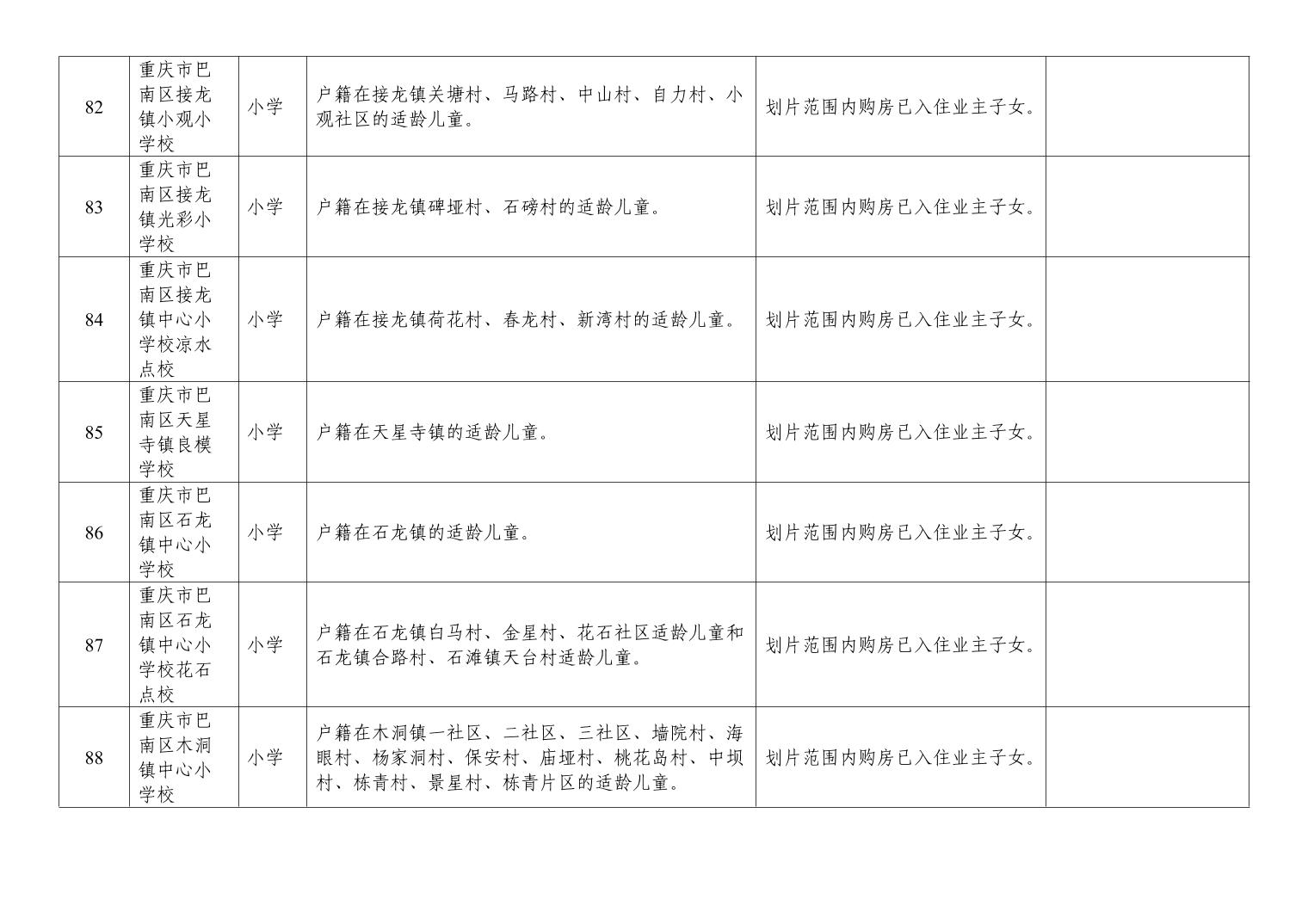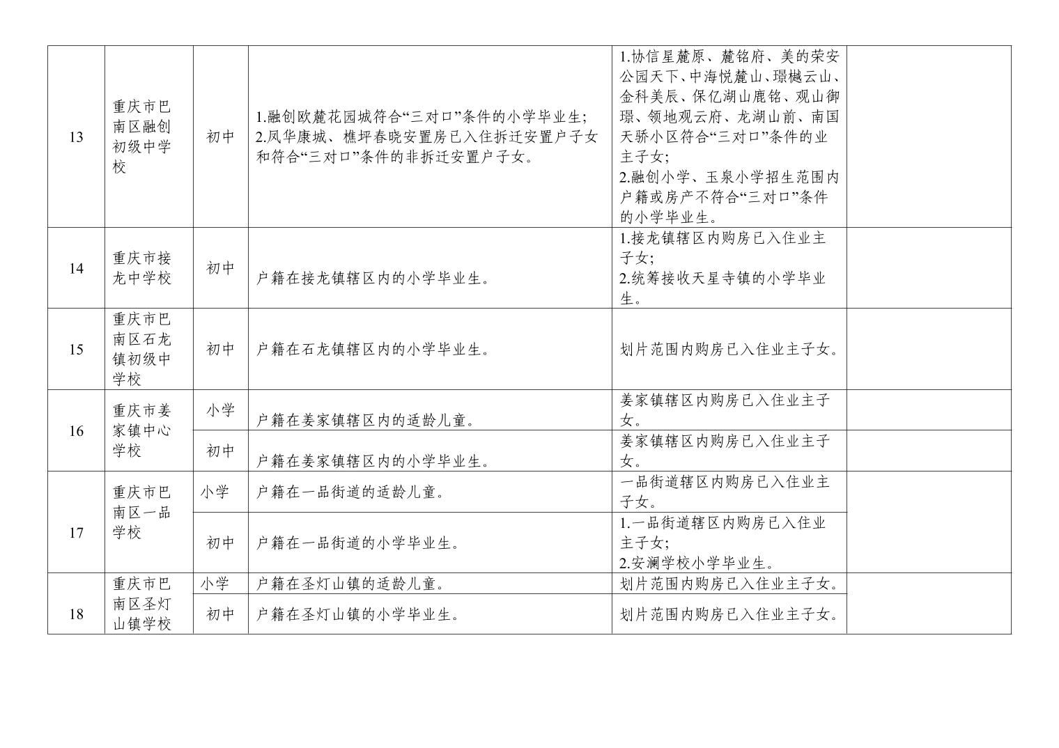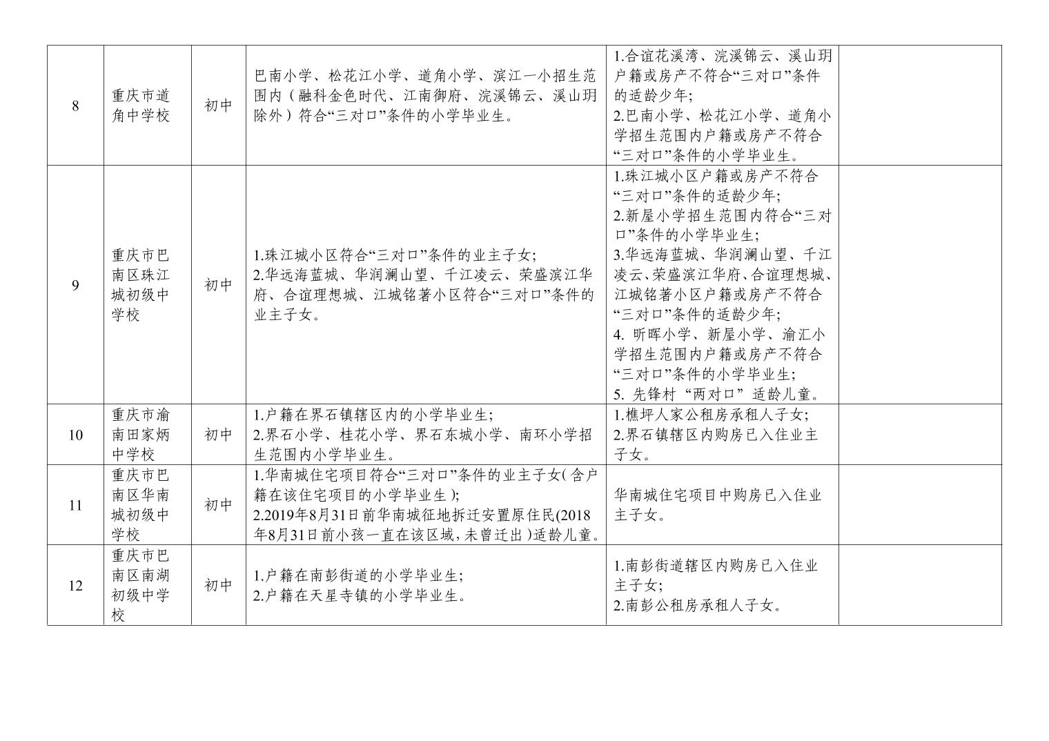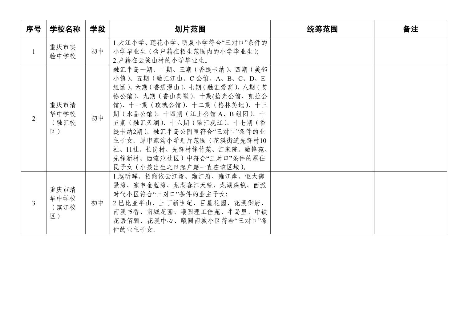 重庆市巴南区2025年义务教育阶段学校招生入学安排一览表