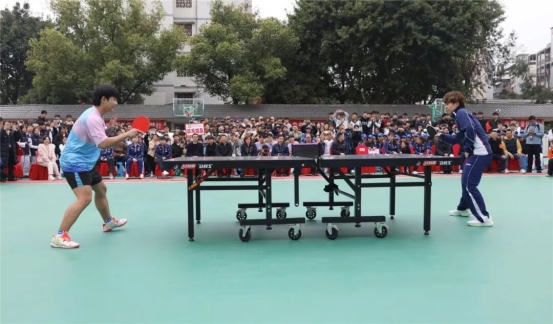 活动现场,最令人热血沸腾的绝对是球技切磋环节。作为巴南区乒乓球特色学校,鱼洞中学热爱乒乓球的热血师生不断涌现,此次他们有幸与偶像隔网对垒,一个个精神抖擞、毫不怯场。