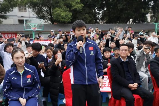 球技切磋过后,暖心的互动提问环节温情开启。同学们抑制不住内心的激动,纷纷举手抢答,将心中积攒已久的疑惑与憧憬一一倾诉:“比赛中遇到瓶颈该怎么突破?”“大赛前如何调整心态?”面对孩子们真诚又热切的提问,孙颖莎等名将结合自身多年的训练经历和大赛感悟,娓娓道来、真诚分享。