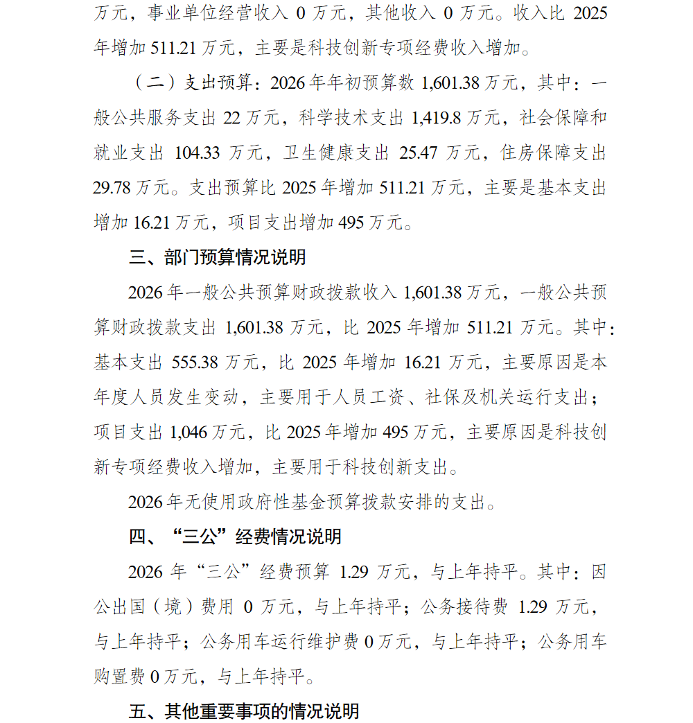 重庆市巴南区科学技术局2026年部门预算情况说明