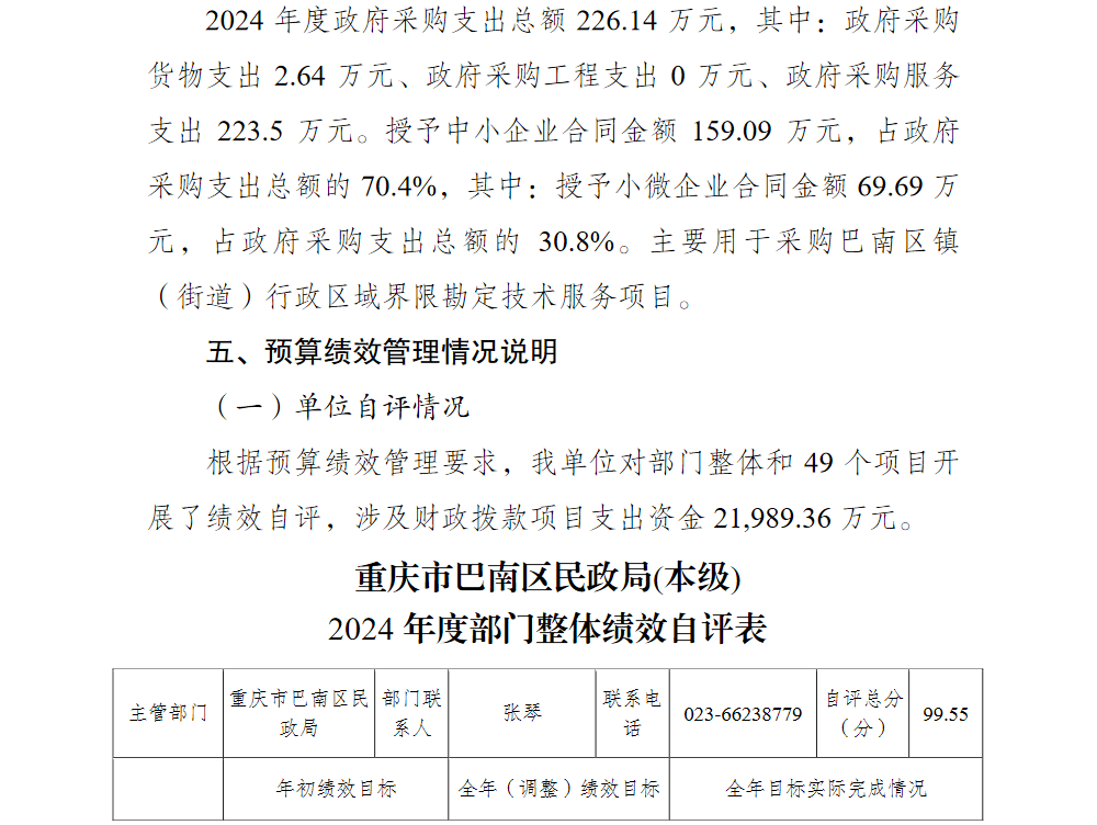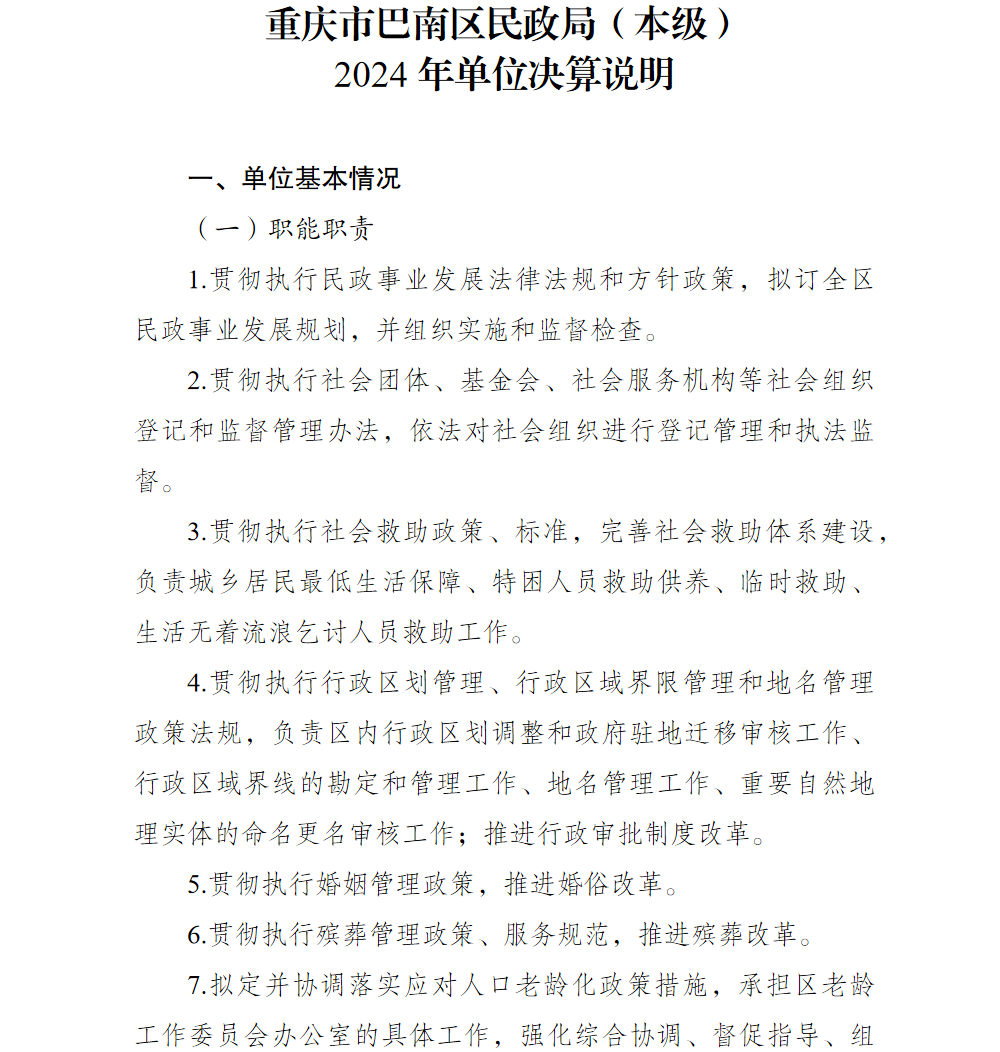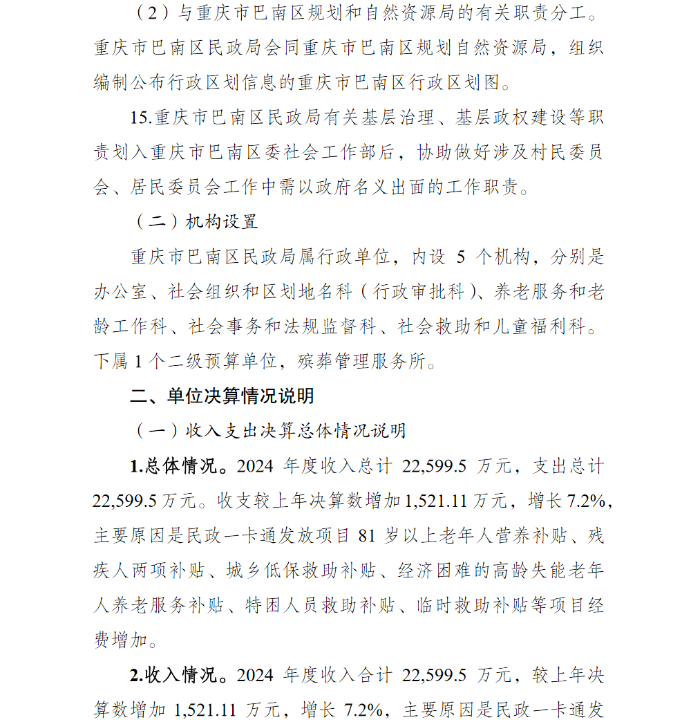 重庆市巴南区民政局(本级)2024年单位决算说明及附表