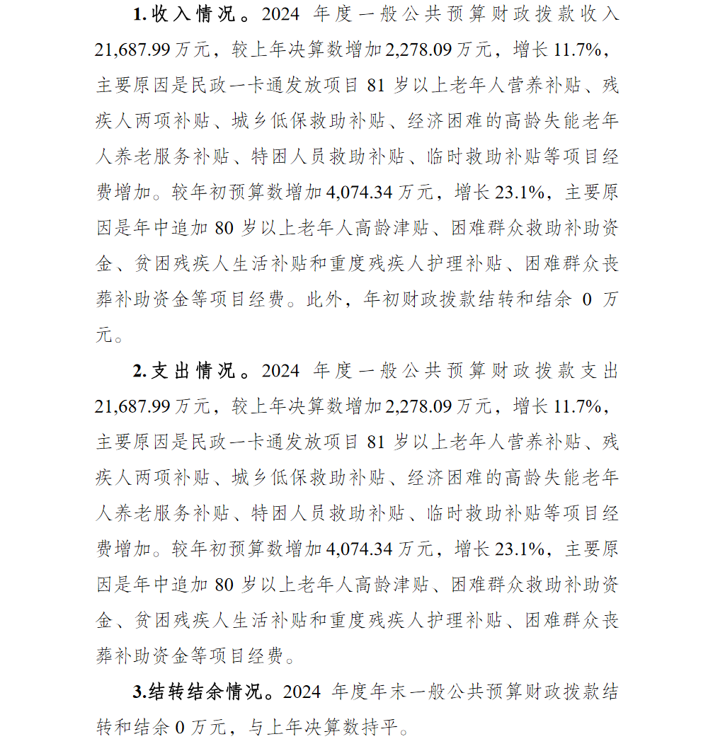 | [ 主题分类 ] | 民政、乡村振兴、救灾 | [ 体裁分类 ] | 财政预算、决算 |