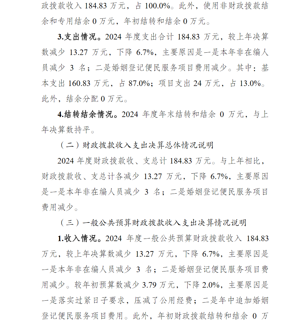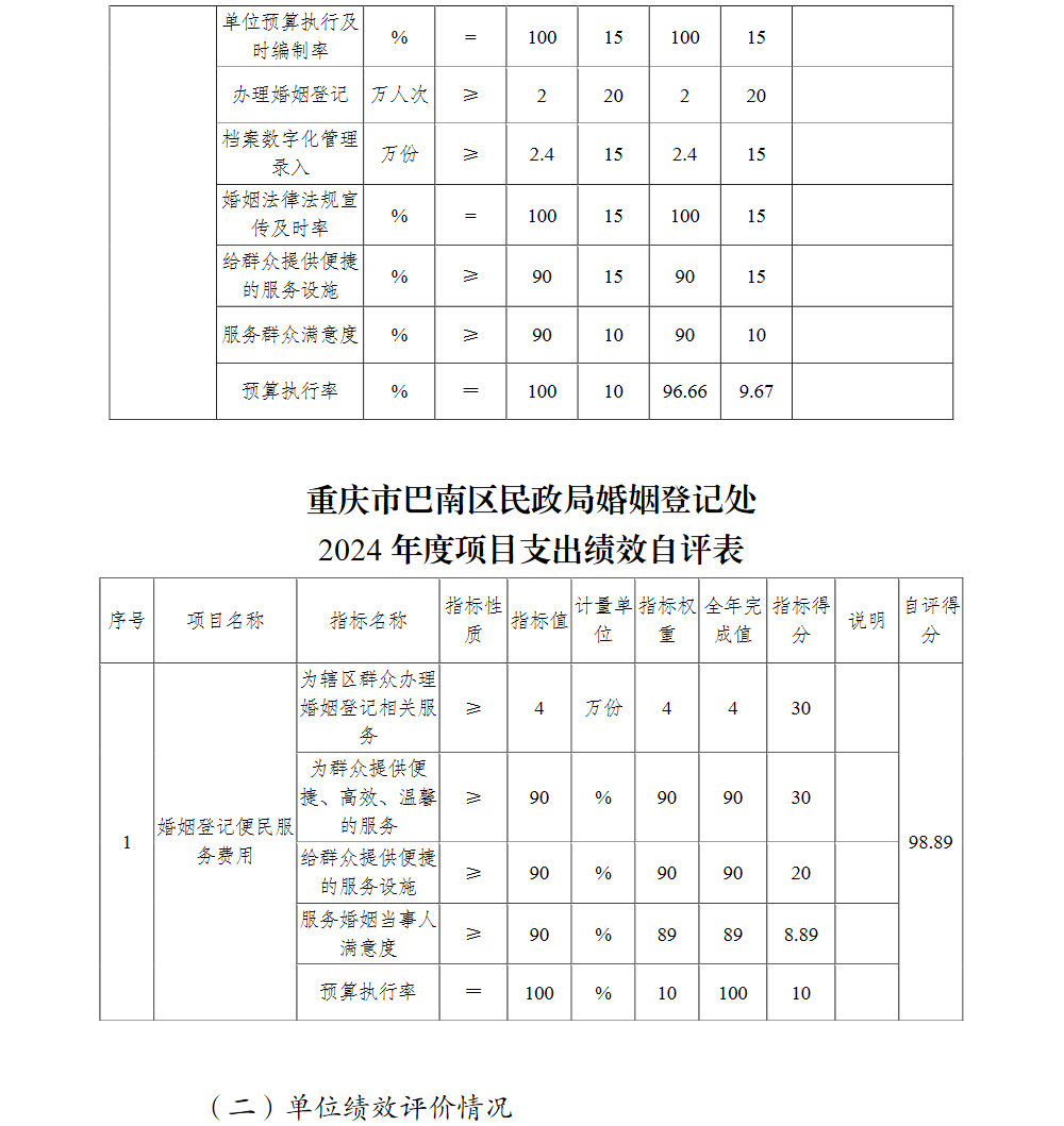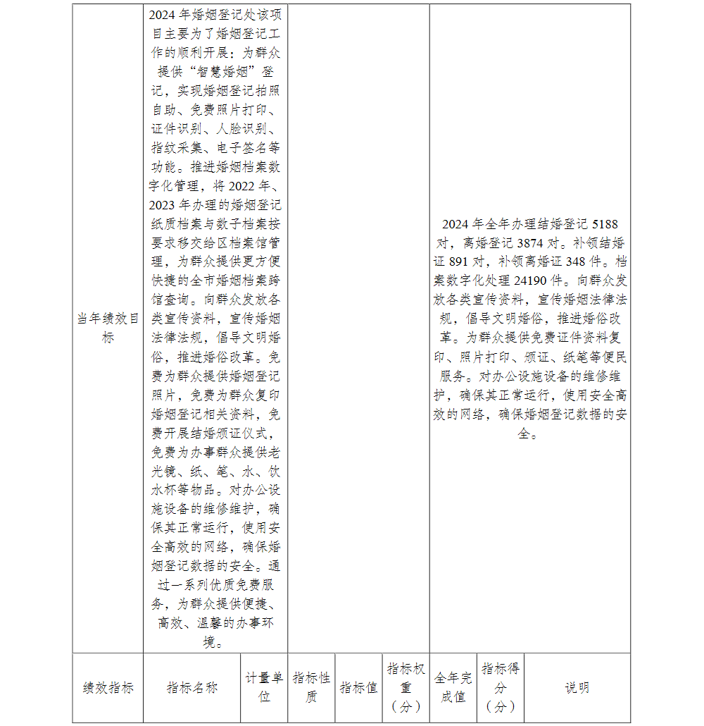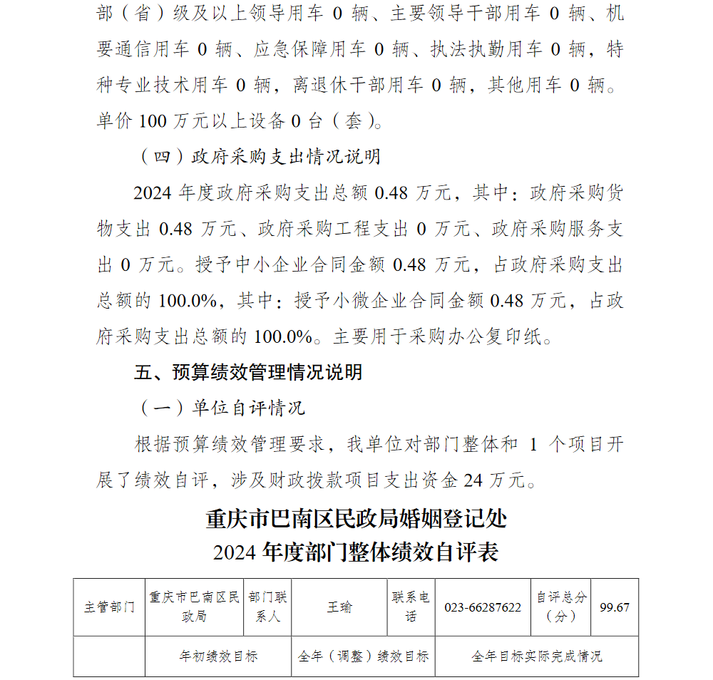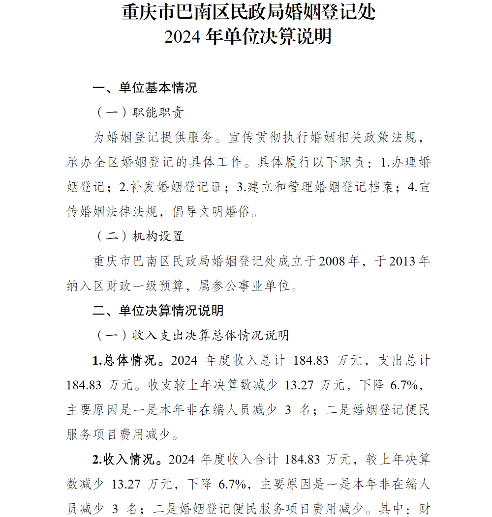 重庆市巴南区民政局婚姻登记处2024年单位决算说明及附表