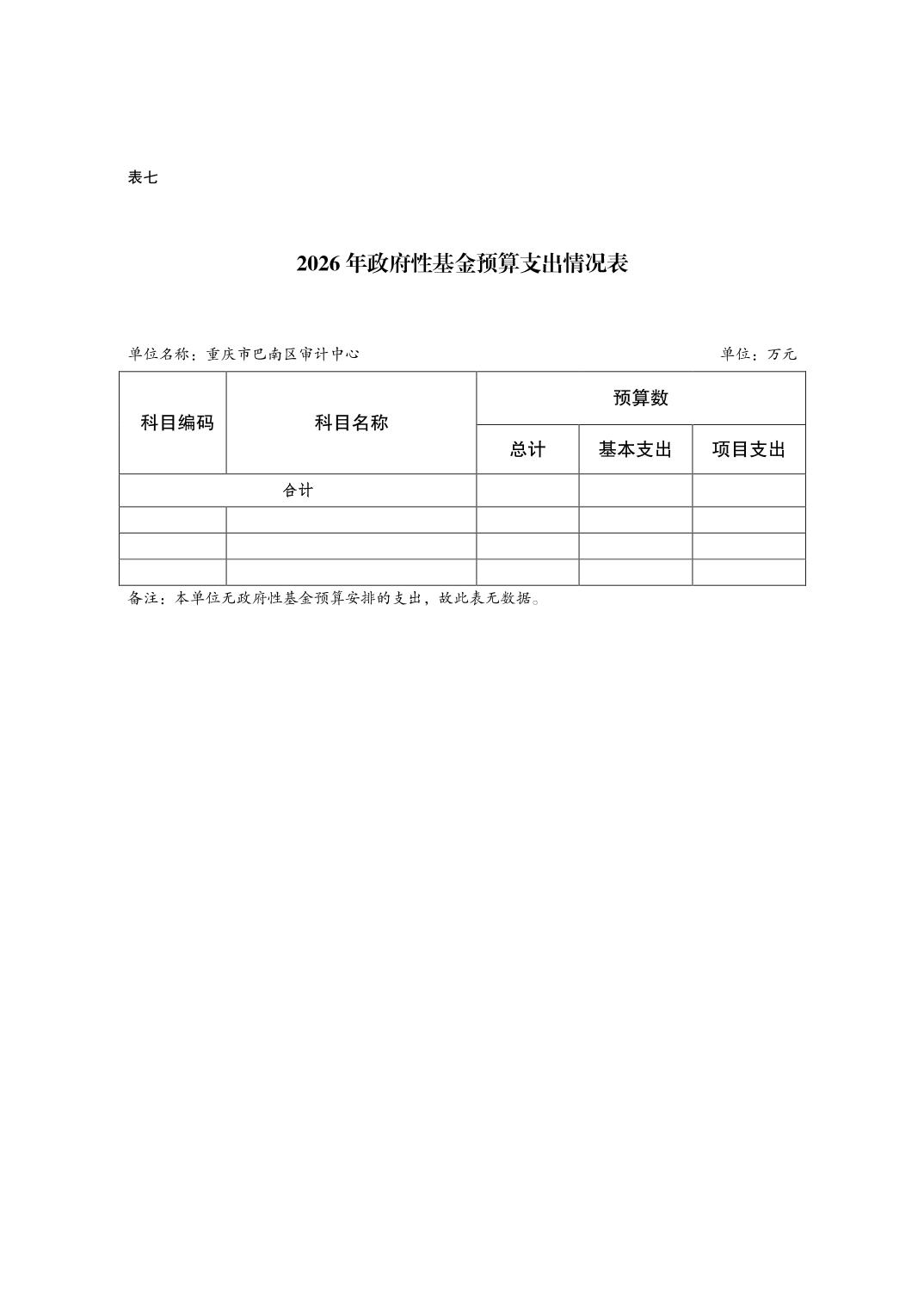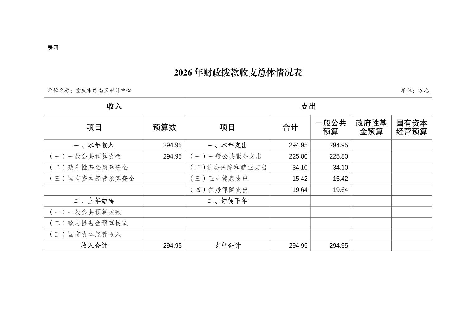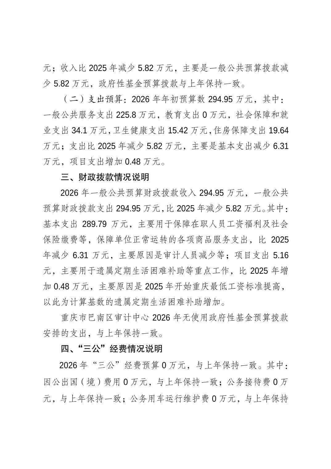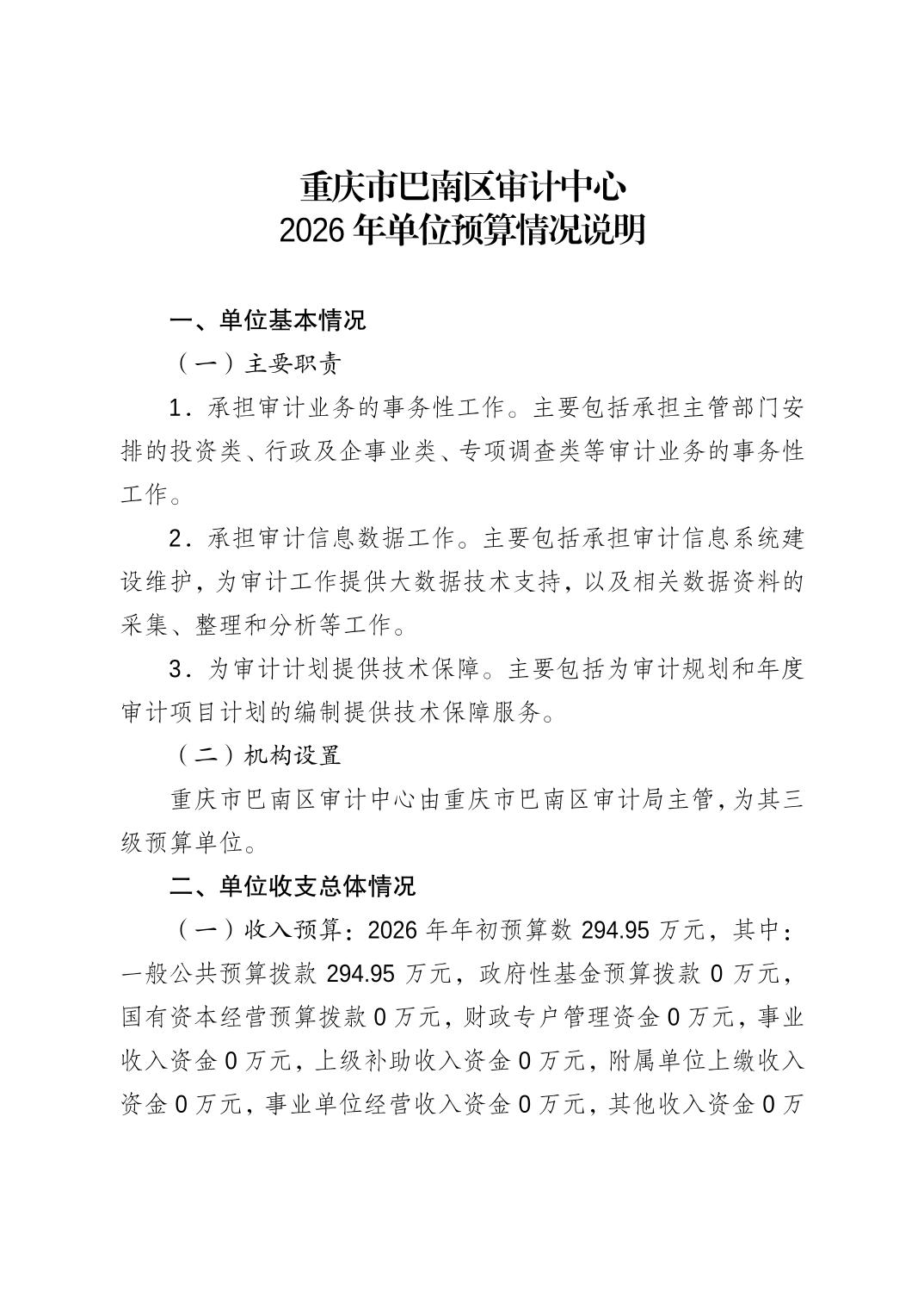 重庆市巴南区审计中心2026年单位预算情况说明